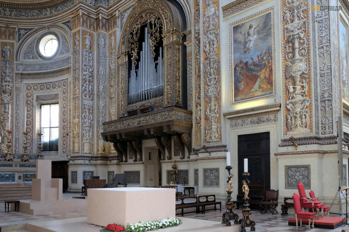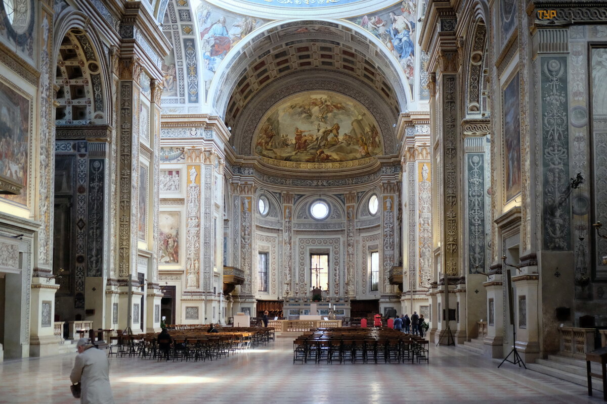 Дворцовая базилика Санта-Барбара, построенная в 1567-1572 гг. по проекту Джован Баттиста Бертани. Сейчас закрыта из-за повреждений, полученных при землятресении 2012 г.