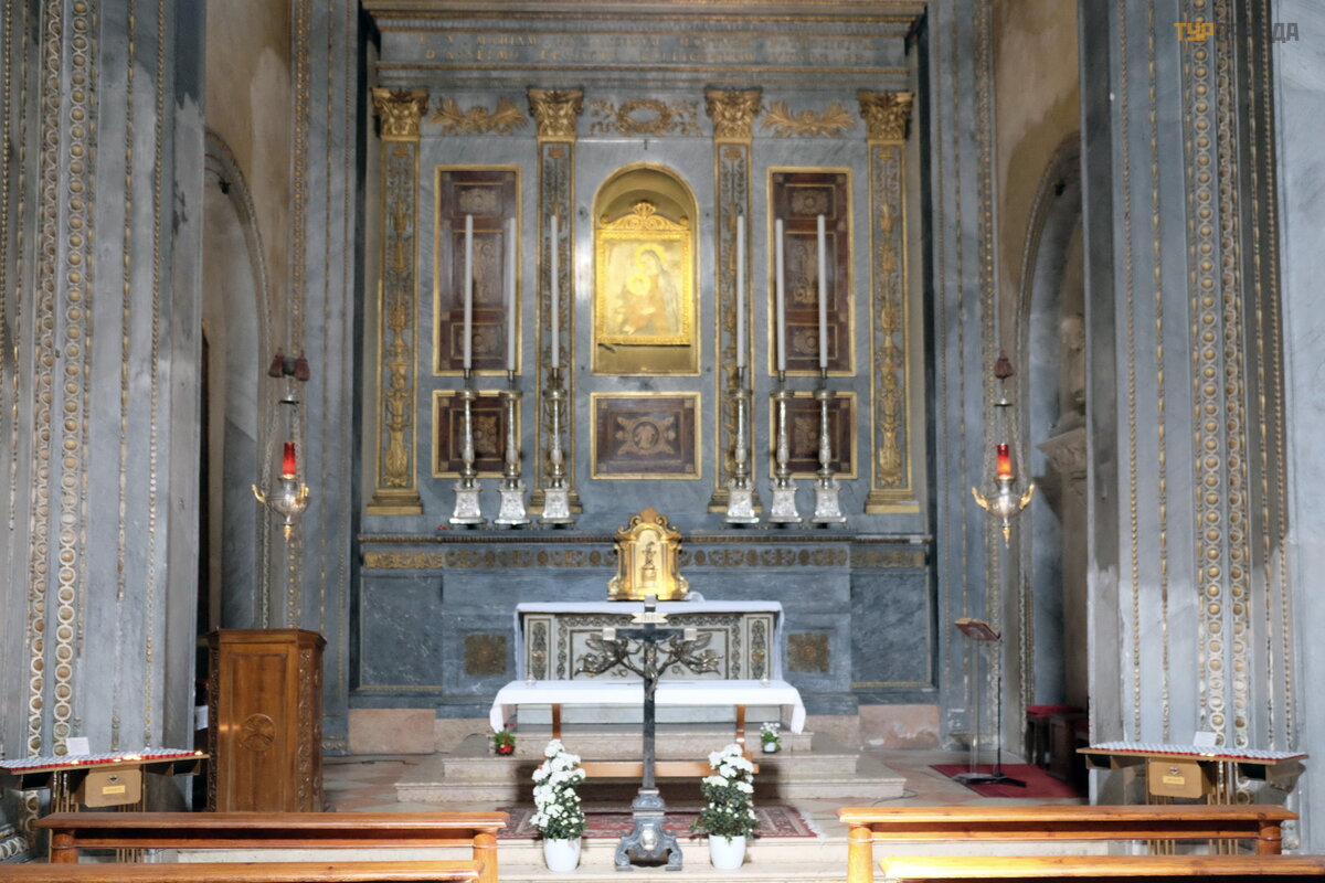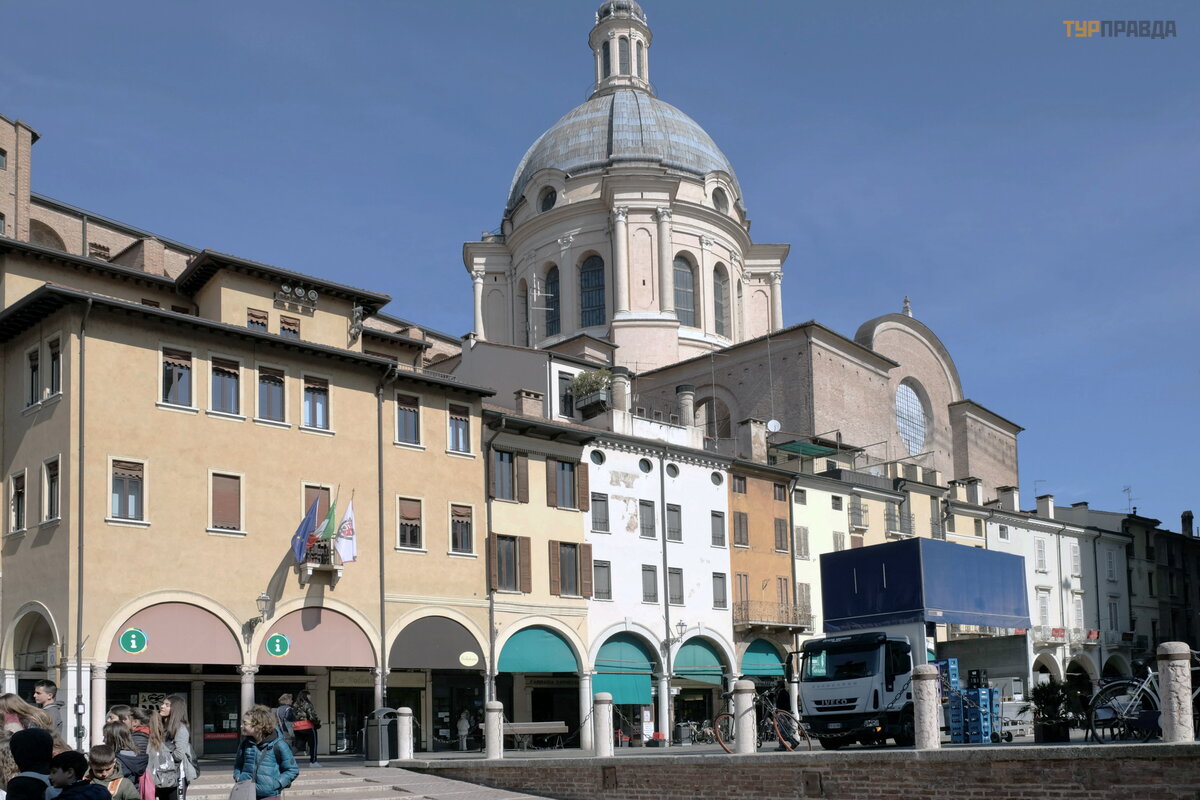 Идем мимо церкови Сан-Себастьяно, построенной между 1460 и 1529 годами по проекту Леона Баттиста Альберти: