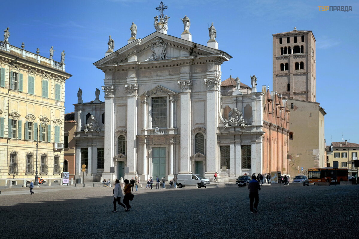 Если церковь Сант-Андреа считается самым красивым собором Мантуи, то главным Кафедральным собором является Собор Сан-Пьетро. Он построен в 12 веке и представляет собой сооружение в романском стиле. Позднее – в 1395-1401 гг. – фасаду добавили элементы в готическом стиле. В 15 веке после сильного пожара здание подверглось реконструкции и стало похоже на базилику св. Петра в Ватикане. А в 18 веке первоначальный вид фасада из разноцветного мрамора был заменен на беломраморный. Собор расположен на площади Piazza Sordello, недалеко от Палаццо Дукале.