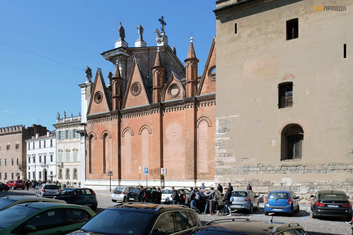 Базилика Сант-Андреа, расположенная на площади Пьяцца Мантенья, построенная по проекту Леон Баттиста Альберти между 1472 и 1494 гг. :