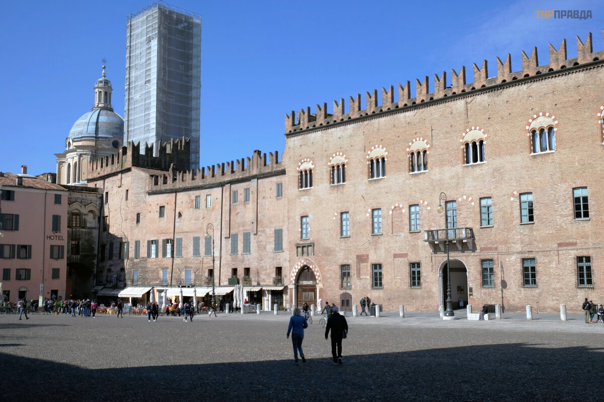 Немного подкрепившись на берегу озера, мы двинулись через весь город смотреть Палаццо. Т. е. летний дворец семьи Гонзага.