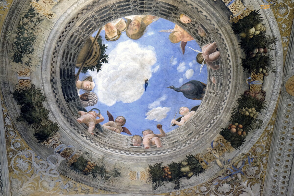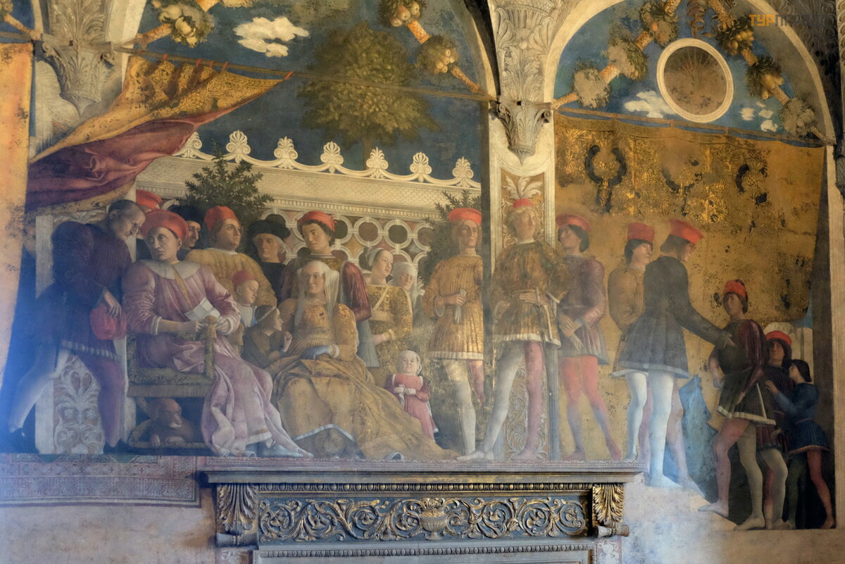 Ž ymiausias „Palazzo Ducale“ kambarys yra „Camera degli Sposi“ (vestuvinis kambarys), kurio freskomis sukū rė Andrea Manteigne 1465–1474 m. ir garsė ja aukš ta vaizdų kokybe, tarp kurių yra apie 30 portretinių figū rų , daugiausia iš Gonzago š eimos, taip pat sumaniai panaudojus perspektyvinius jaukus. Turiu pasakyti, kad sezono metu sunku apž iū rė ti š ią patalpą dė l didelio ž monių bū rio, o laikas ribotas, bet č ia mums pasisekė , niekam, iš skyrus mokyklinę ekskursiją .
