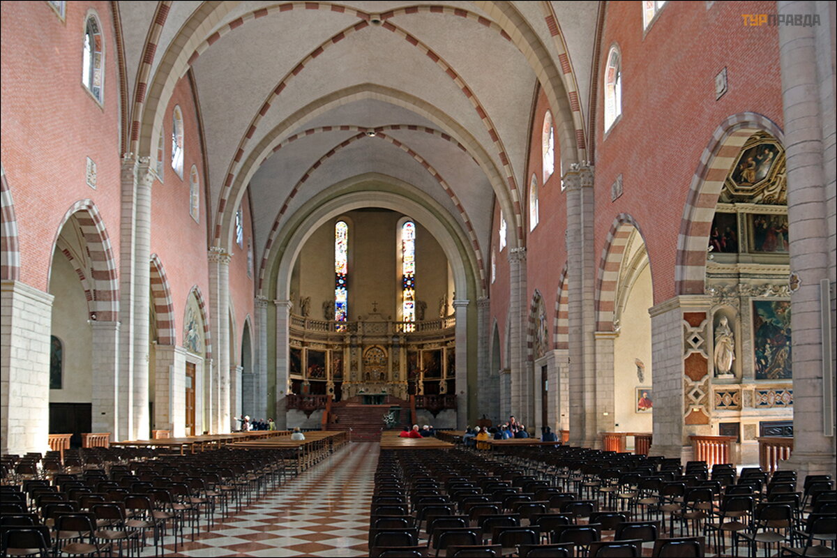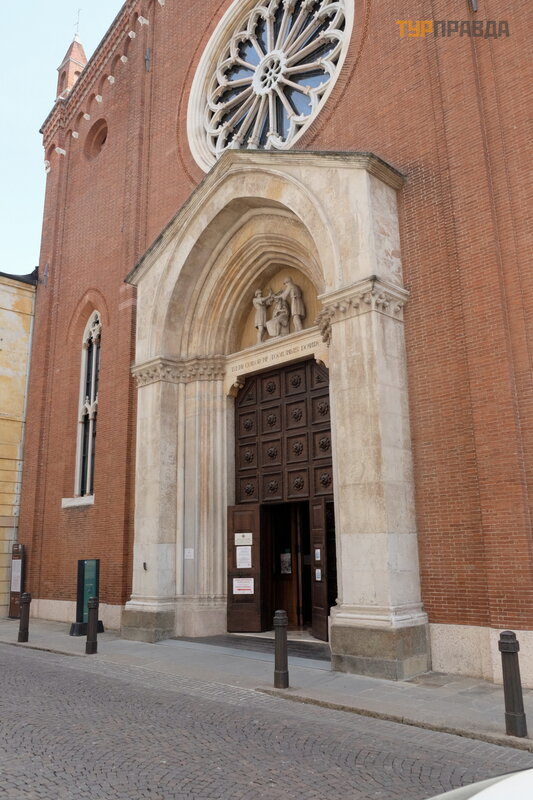 Кафедральный Собор Виченцы Санта-Мария-Аннунчата – странноватое длинное кирпичное здание с отдельным куполом и белокаменным фасадом.