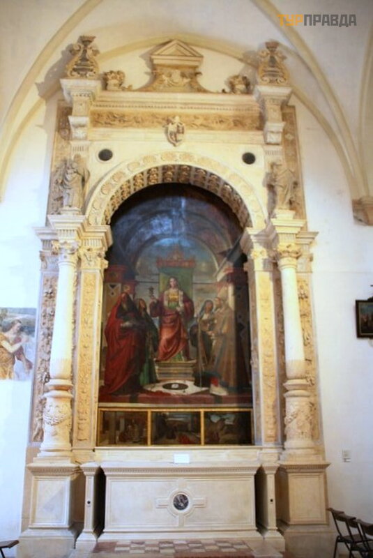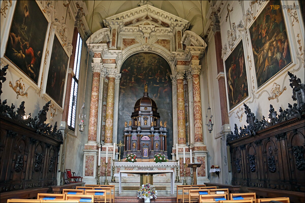 В церкви хранится приличное собрание произведений искусства, в числе которых – " Поклонение волхвов" Веронезе и " Крещение Христа" Беллини.