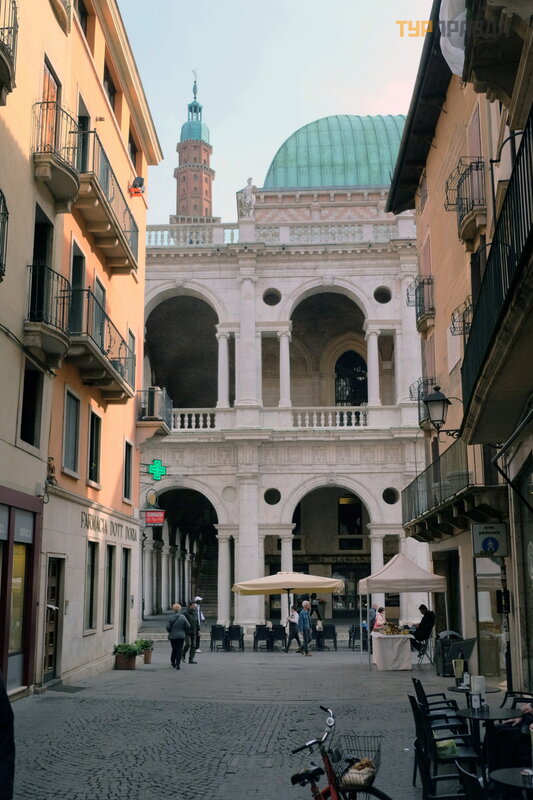 Вот уже показалась зеленая крыша Базилики Палладиана: