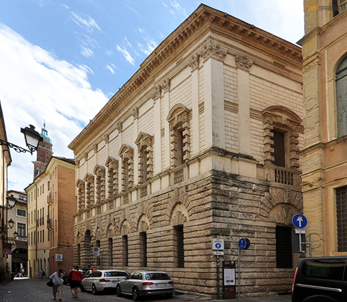 Это первый проект Палладио в Виченце – реставрация имевшегося на этом месте готического дворца Palazzo della Ragione. В конце XV в. юго-западный угол дворца обрушился. В последующие полвека многие именитые архитекторы не решались реставрировать здание. Наконец в 1546 г. за дело взялся молодой малоизвестный архитектор. Палладио добавил к готическому дворцу серлиану – лоджию и портик с полукруглыми аркадами. Лоджия – чуть ли не первый проект, в котором применён архитектурный элемент « венецианское окно» , впоследствии названное также палладианским. Отделка фасада завершилась уже после смерти Палладио. С 2007 г. Basilica Palladiana подверглась масштабной реставрации. Сейчас здание служит выставочным и культурным центром.