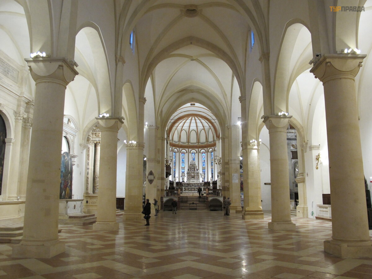 Собор построили в 1430 г. , а фасадом он обзавелся в 1467 г. Купол собора в 1558 г. спроектировал Палладио.