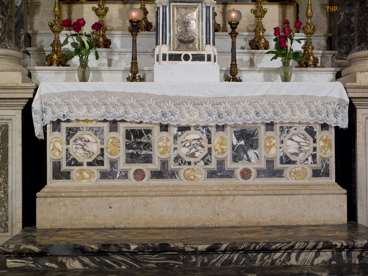 Altoriaus paveikslas datuojamas 1667–1669 m. , instrukcijos pagamintos iš pusbrangių akmenų , Florencijos meistro Corbarelli, kuris 1670–1671 m. taip pat pastatė š ventyklą virš altoriaus. Grandiozinis kompleksas stovi ant trijų laiptelių , papuoš tas inkrustacija, geometriniais ir gė lių motyvais.