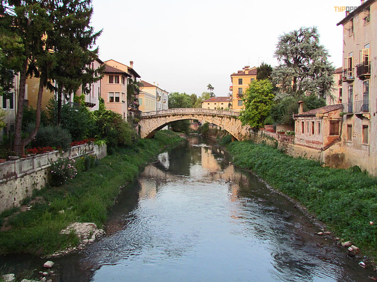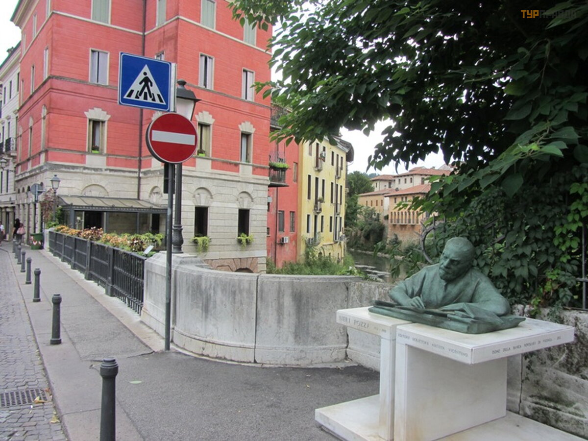 Тут мы сделали короткий перерыв на обед и ушли в район Пьяцца Кастеллок « Тропе четырех мостов» , с которой открывается вид на дома, омываемые медленными водами реки Ретроне. Эта часть города кардинально отличается от « палладианского» лица Виченцы