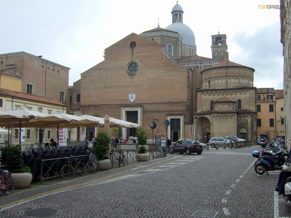 Š alia aikš tė s yra dar viena atrakcija – Santa Giustina (Giustina) bazilika. Bazilikoje yra aš tuoni skirtingo dydž io kupolai. Ant aukš č iausio kupolo yra penkių metrų aukš č io Š v. Giustinos, Padujos globė jos (Santa Giustina) statula. Jis buvo pastatytas toje vietoje, kur buvo palaidotas Maksimiliano valdymo kankinys, o vė liau ir kiti krikš č ionys. Baž nyč ia, kurią matome dabar, buvo pastatyta XVI amž iaus pirmoje pusė je, tač iau fasadas taip ir nebuvo baigtas.