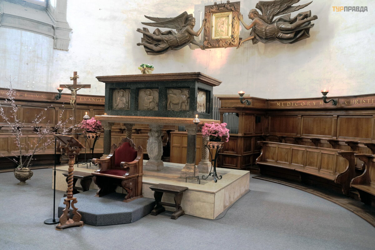Prieš ingai nei Š v. Antano bazilika, ji gana erdvi, o lankytojų nedaug.