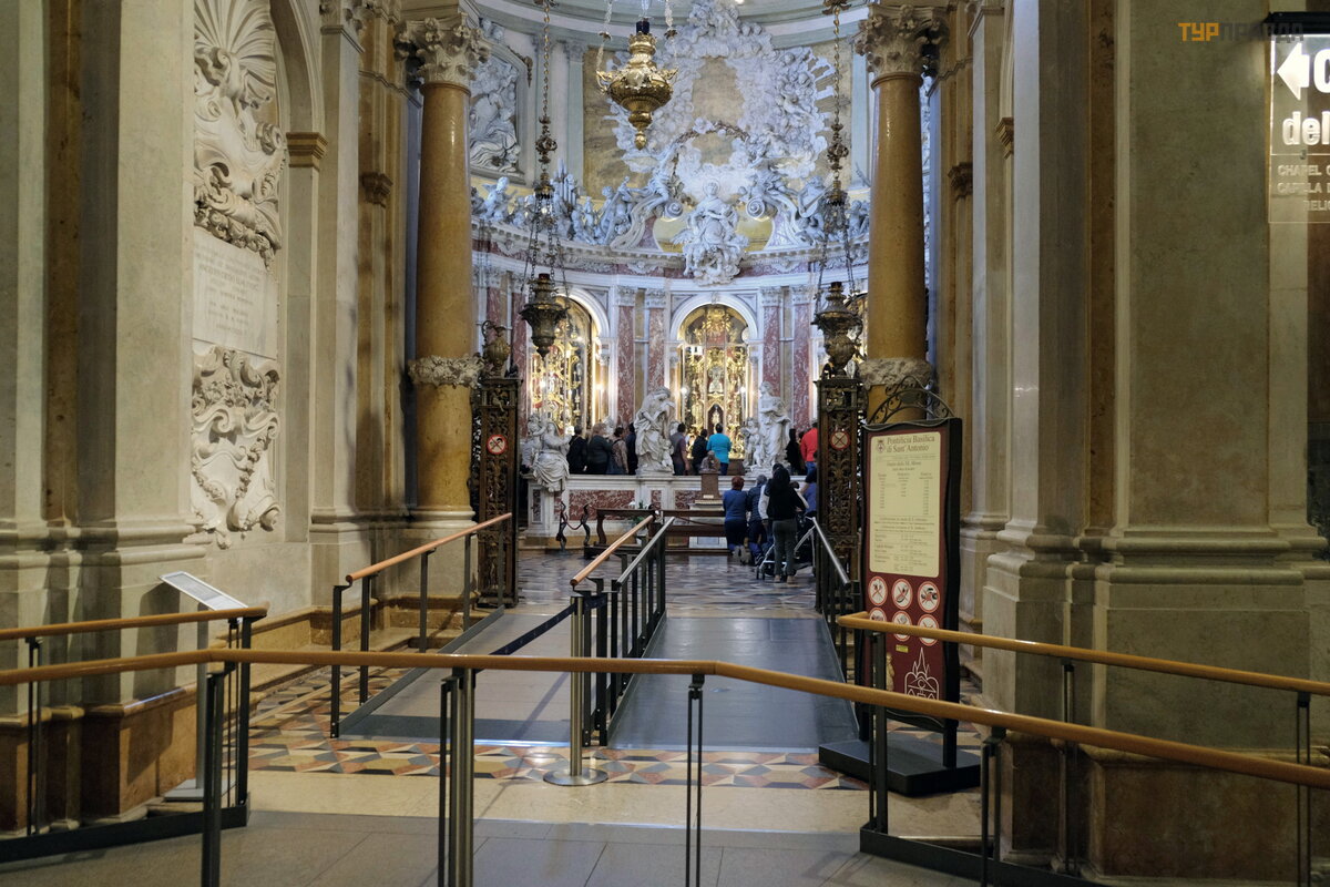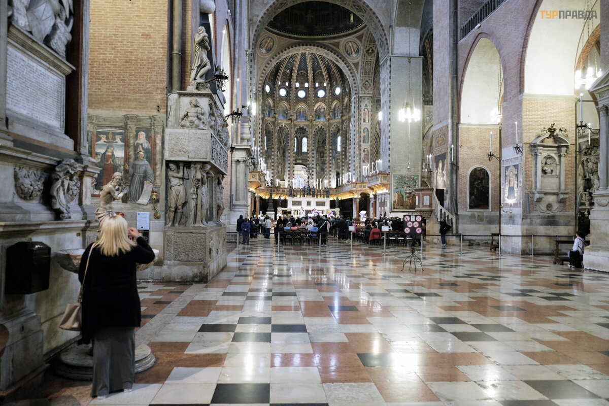 Pirmą kartą apsilankius bazilikoje, Veneto regiono vyskupas skaitė pamokslą , buvo begalė maldininkų ir sargybinių . Fotografuoti griež tai draudž iama. Antano š ventovę padariau vieną nuotrauką . Jis taip pat vadinamas tiesiog „sarkofagu“ („Arka“). Kapas yra po altoriumi XVI a. Tiziano Aspetti darbai,