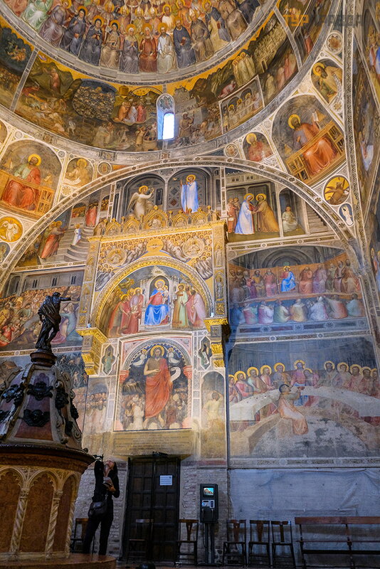 Krikkš tyno kupolas ir sienos yra visiš kai padengtos Menabuoi per vienerius metus nutapytomis freskomis. Giusto de Menabuoi buvo Giotto pasekė jas 1375–1378 m.