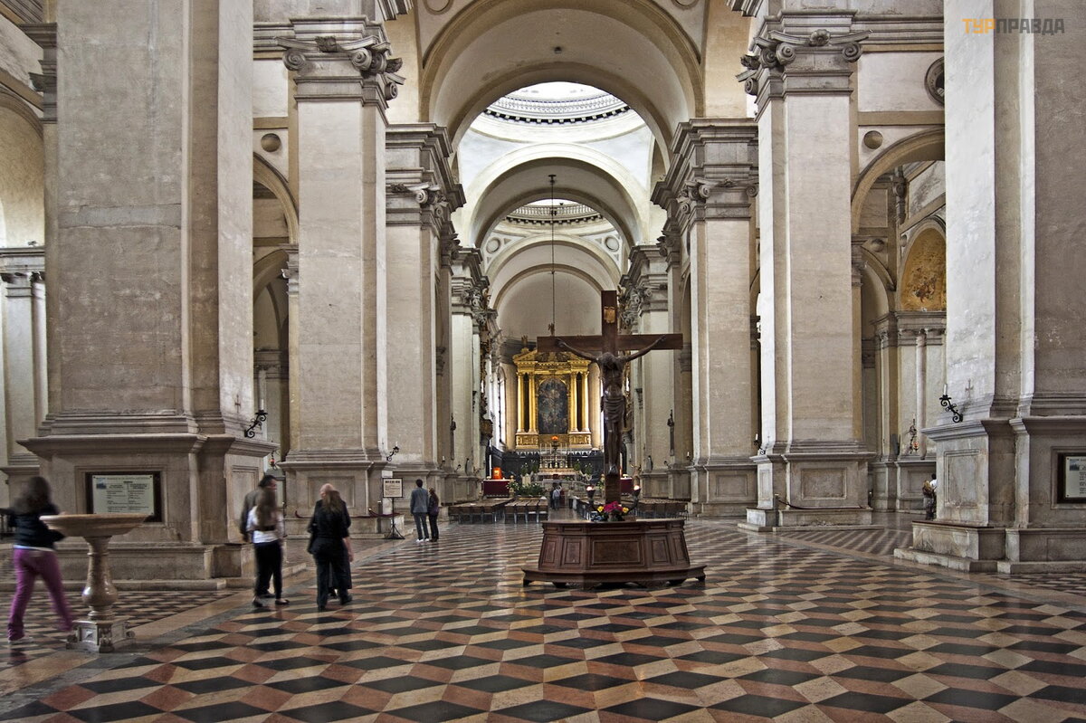 Viduje esanti bazilika labai š viesi ir tiesiog didž iulė . Tai viena didž iausių baž nyč ių Italijoje. Be 304 metais nukankintos š v. Justinos, baž nyč ioje saugomi ir kitų ankstyvų jų krikš č ionių kankinių palaikai.