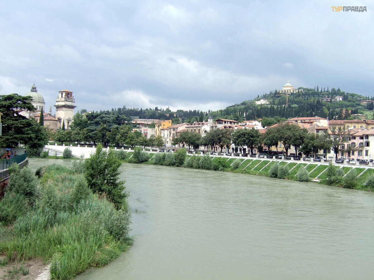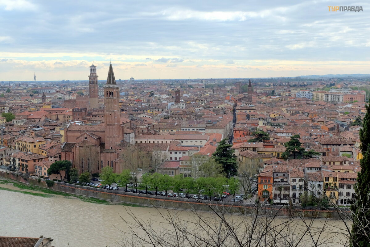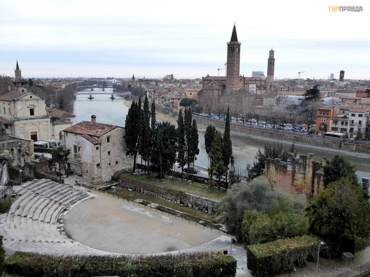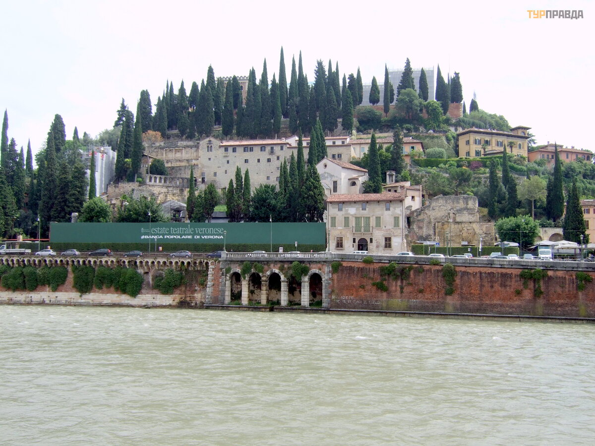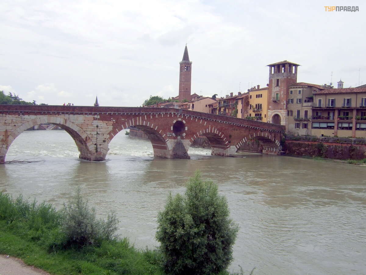 Kitą dieną oras pagerė jo, nors buvo debesuota, todė l iš vykome apž iū rė ti miesto toliau. Vė l į ž engė me į senamiestį pro Porta Palio vartus ir patraukė me į „seną ją pilį “ – Castelvecchio (Castelvecchio), kilusią iš Scaligeri eros, priklausiusią Della Scala š eimai. Tai milž iniš kų proporcijų kompleksas, į kurį į eina gynybinis tiltas su mū rais, iš mestais per Adidž ę .