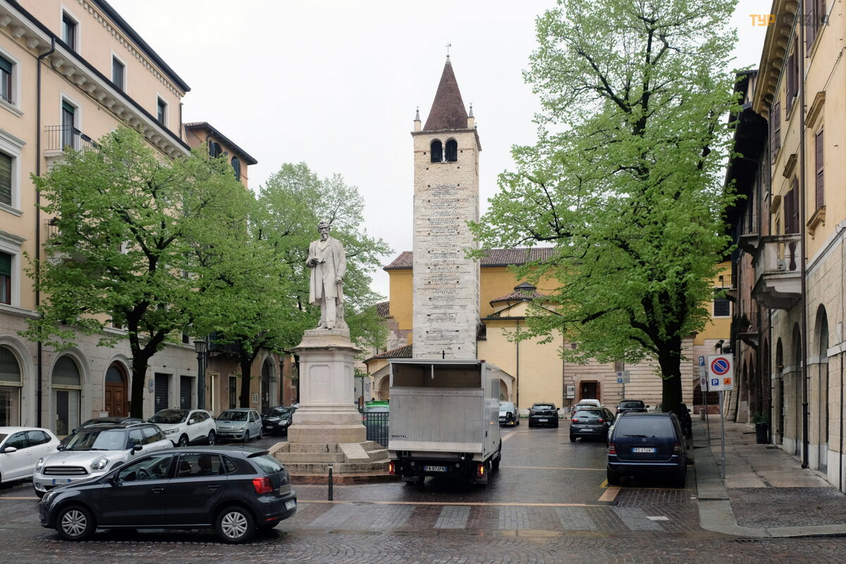 Prieš už paminklo poetui ir visuomenė s veikė jui Aleardi nedidelė je aikš tė je yra kita baž nyč ia, pavadinta tuo pač iu pavadinimu – Piazzetta Santi Apostoli.