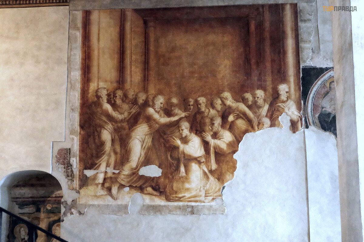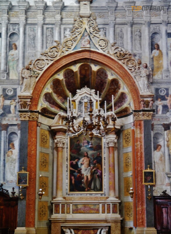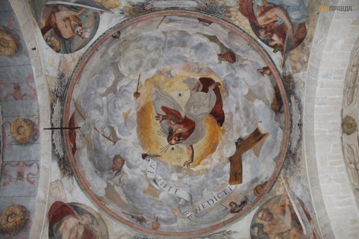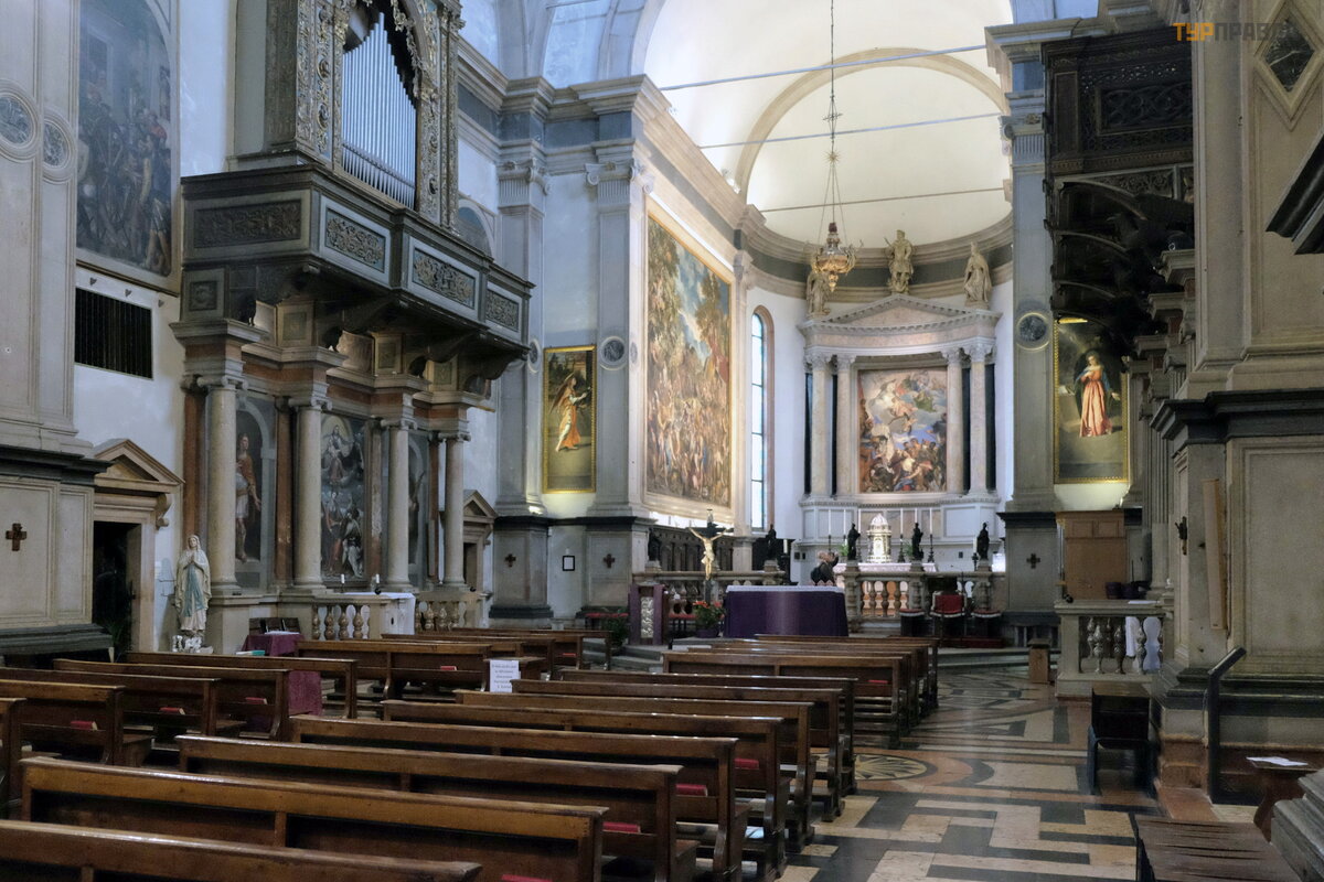 Ant baž nyč ios sienų galite pamatyti Nicolò Giolfino ir Francesco Caroto freskas. . .
