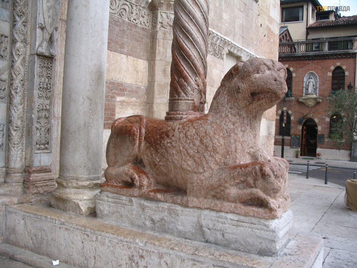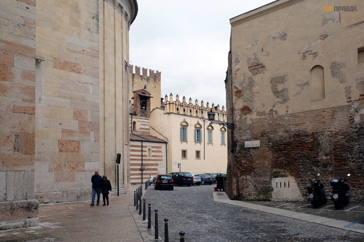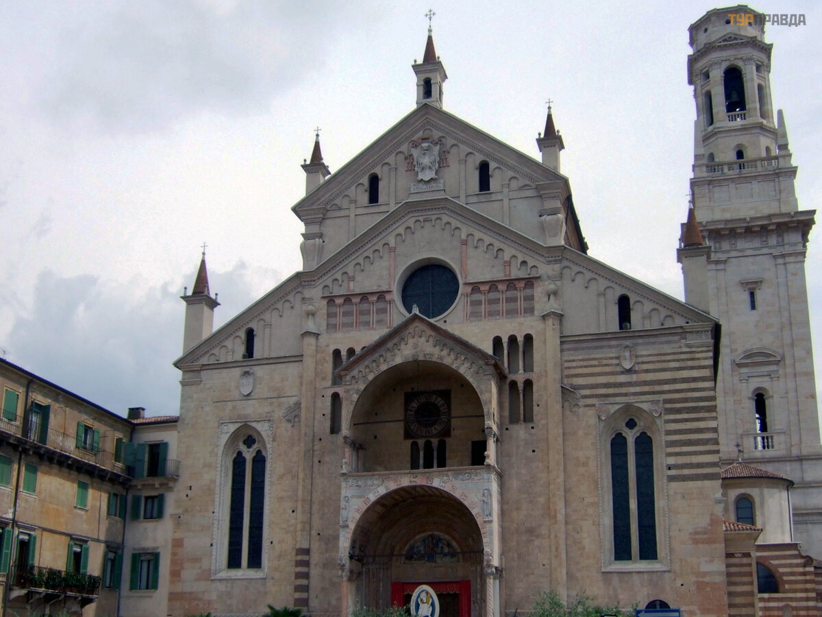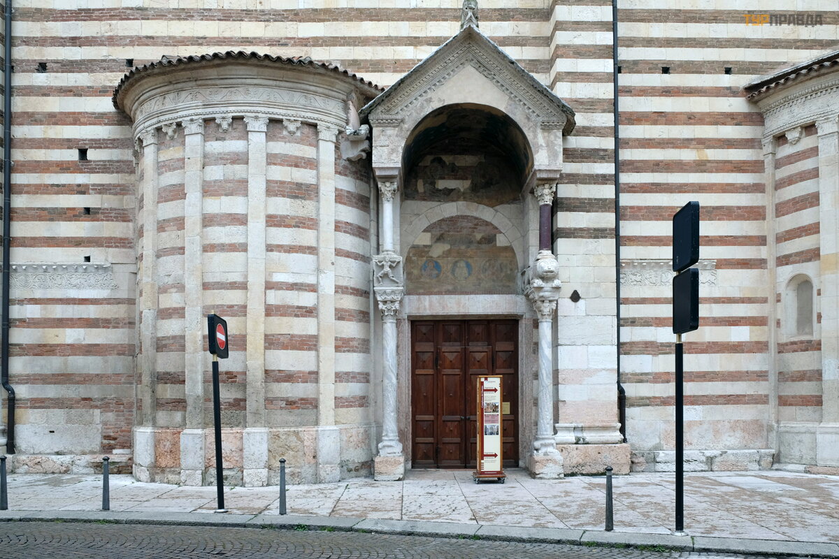 Už kandę nusileidome ž emyn. Tę sė me ž ygį per Veronos baž nyč ias. Kitas buvo Veronos katedra, į traukta į mū sų abonementą . Š ventykla buvo paš ventinta 1187 m.