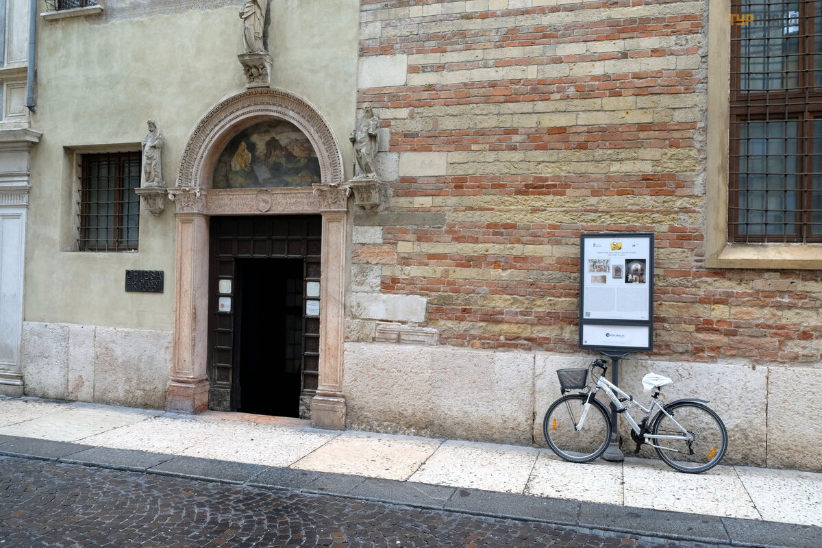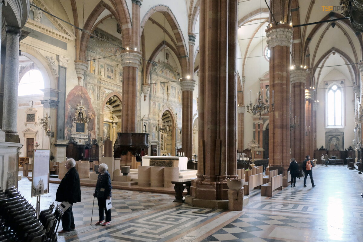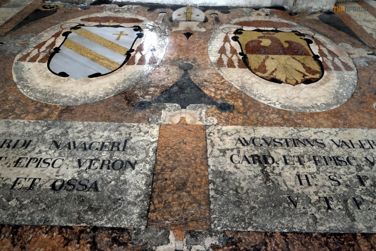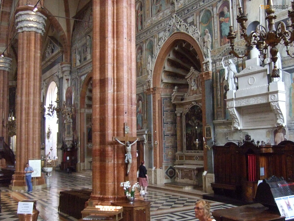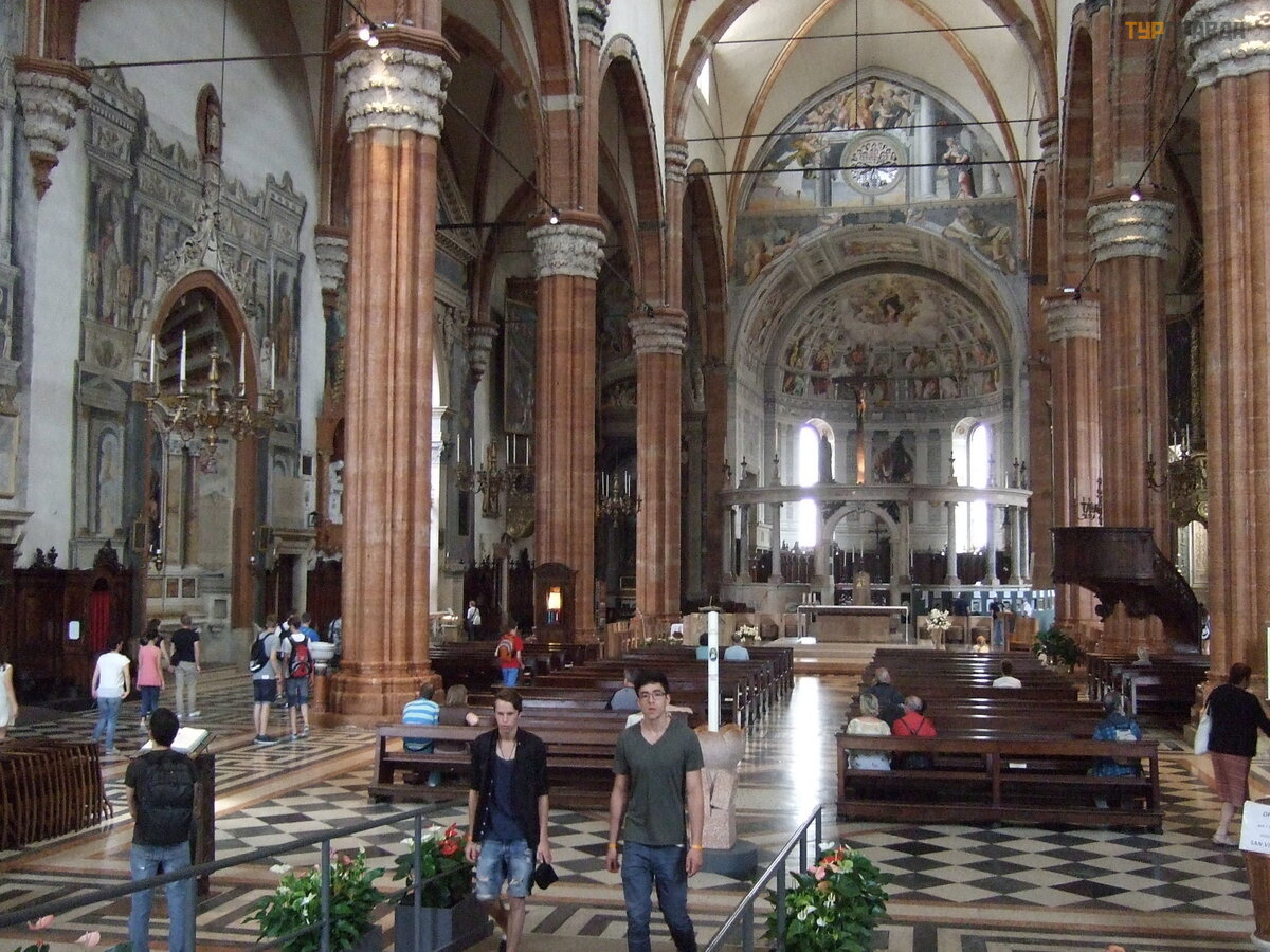 Už kandę nusileidome ž emyn. Tę sė me ž ygį per Veronos baž nyč ias. Kitas buvo Veronos katedra, į traukta į mū sų abonementą . Š ventykla buvo paš ventinta 1187 m.