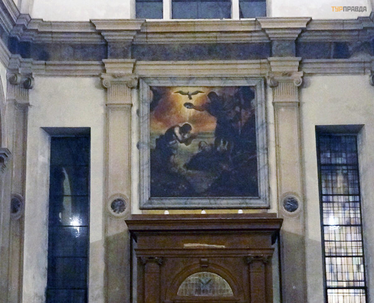 Ticiano paveikslas „Madonos ž engimas į dangų “ stovi 1535 m. , tai yra vė liau nei gerai ž inoma drobė su ta pač ia tema Venecijos Dei Frari š ventykloje, bet turtingesnė dvasingumu. ypač . Š į paveikslą į rė mina vertingas Jacopo Sansovino karnizas.