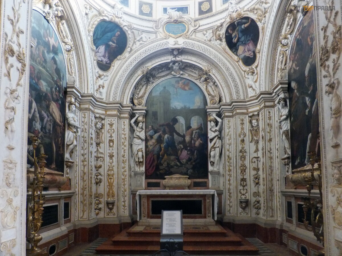 Kairė je katedros navoje esanč ius vargonus puoš ia graž us Bruzasorchi paveikslas, kuriame galima pamatyti biblinę sceną – Š venč iausiosios Dievo Motinos ė mimą į dangų , taip pat keturių vyskupų atvaizdus. miesto. Š is unikalus paveikslas buvo padarytas XVI a.
