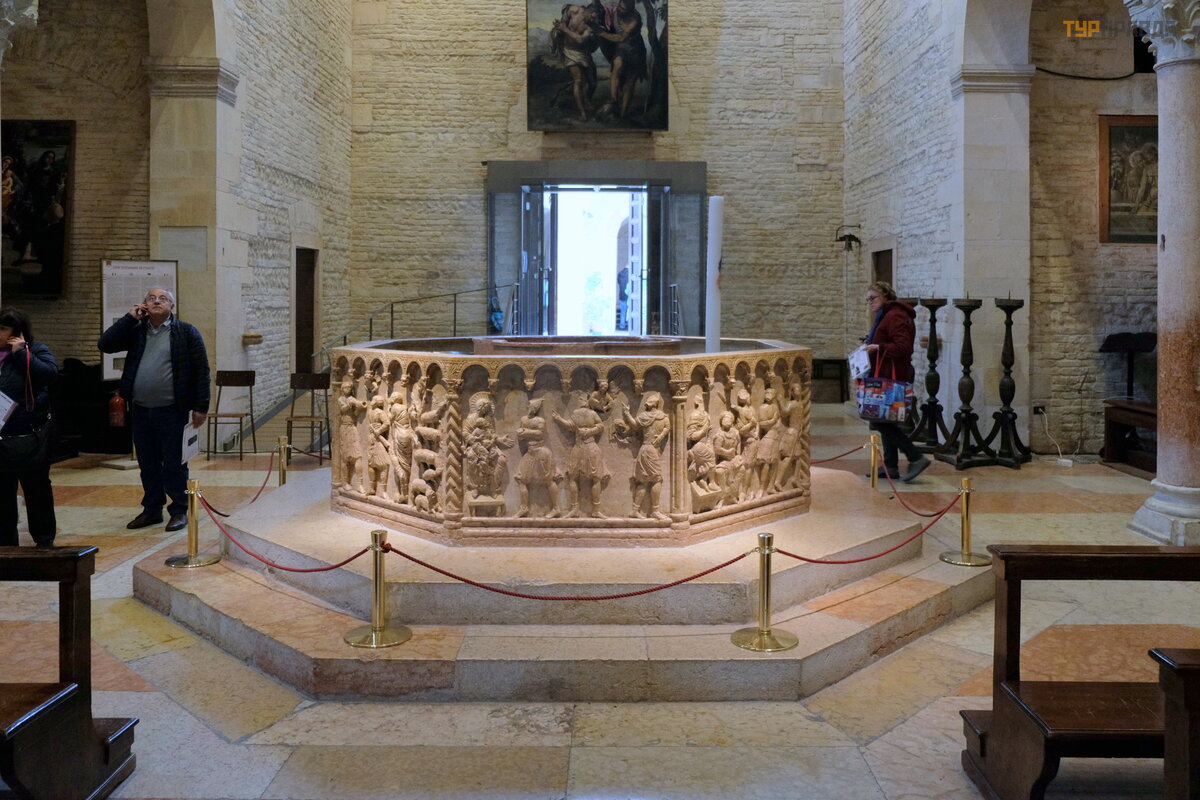 San Giovanni in Fonte baž nyč ios perlas – aš tuonkampį primenantis krikš tas (apie XIII a. ) ir Veronos marmuras, iš kurio iš kaltas San Zeno bazilikoje esantis š riftas. Dė l savo nepaprasto gyvumo ir grakš tumo skulptū rinė š rifto puoš yba gali bū ti priskirta prie viduramž ių Veronos meno virš ū nių .