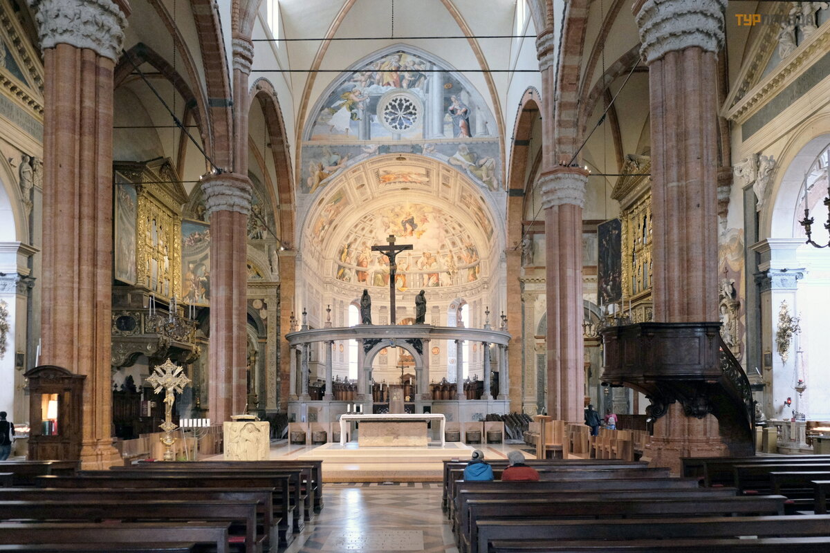 Centrinę katedros navą už baigia kanceliarija, kurią XVI amž iuje pastatė architektė Michele Sanmicheli. Choro baliustrada padaryta pusapvalio parapeto su joninė mis kolonomis pavidalu.