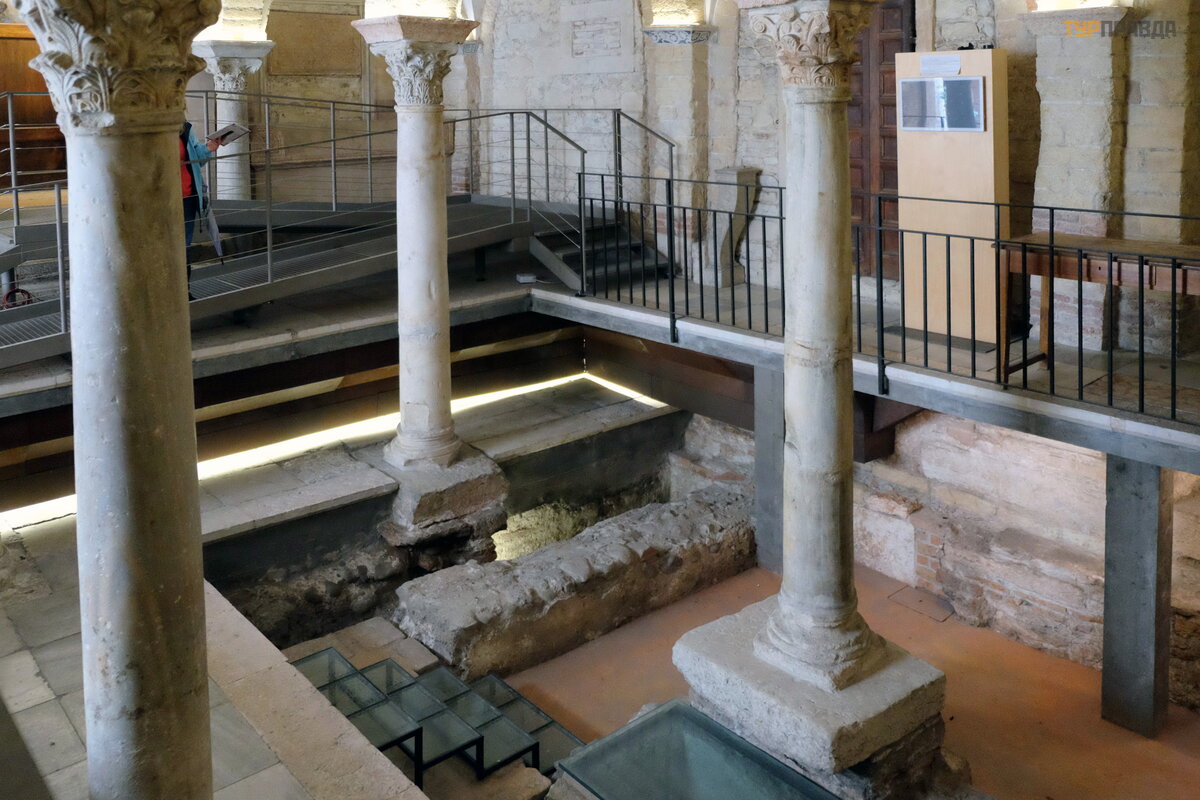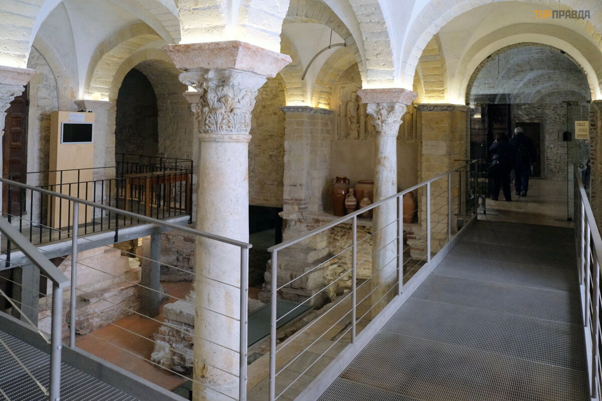 Presbiterijoje, tiksliau po ja: po archeologinių darbų buvo aptiktos IV a. pr. Kr. mozaikinių grindų liekanos. Sako, č ia tarnavo ir Veronos vyskupas š v. Zenonas. Be to, po š iuo aukš tu buvo aptiktos kitos š ventyklos liekanos – kam ji buvo skirta, iki š iol než inoma.