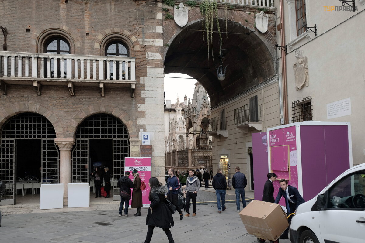 Tada š iek tiek pasivaikš č iojome po miestą , tuo metu Veronoje vyko vyno mugė , aikš tė se buvo statomi paviljonai, vietos pasirodymams.
