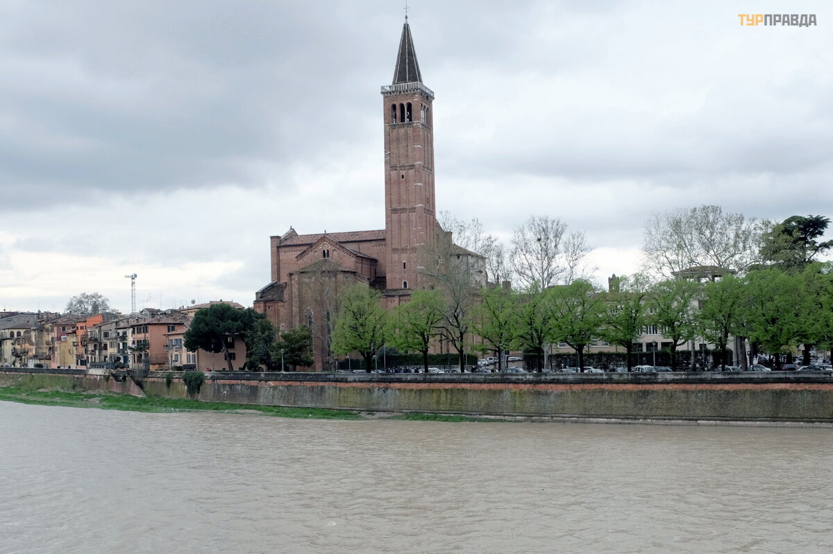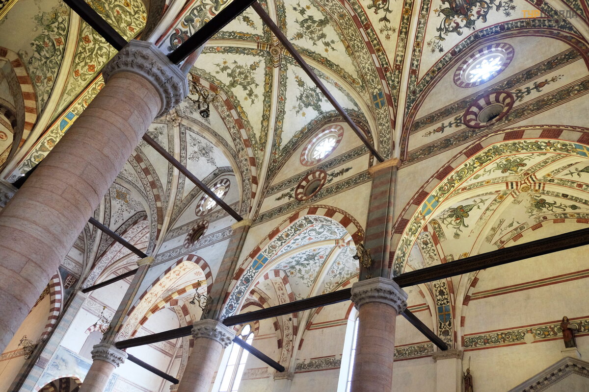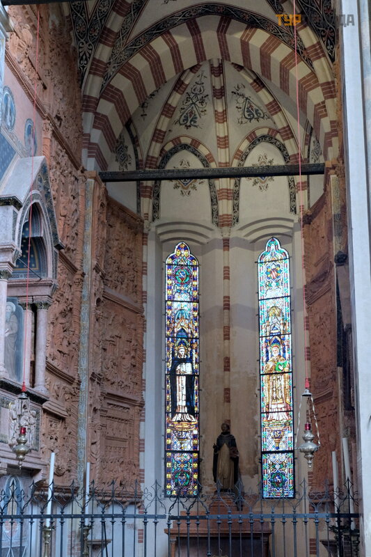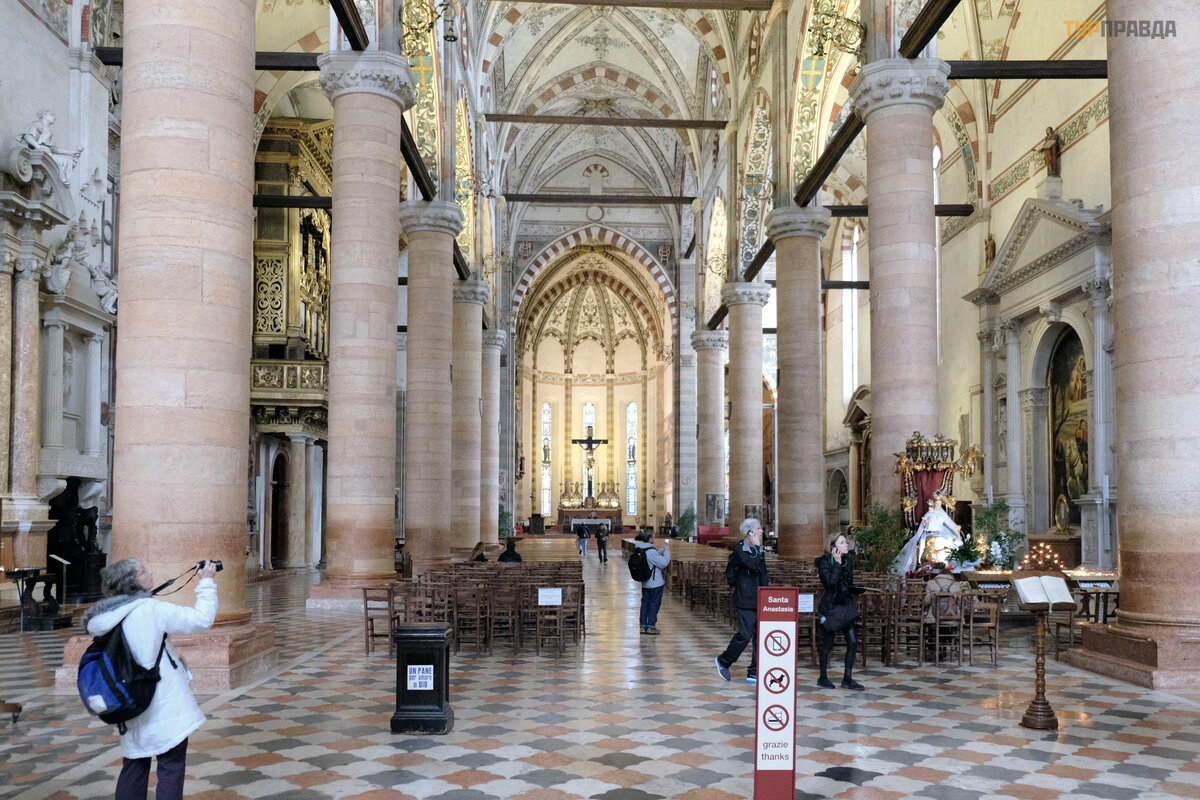 . . . pamatykite paskutinę suplanuotą katedrą , didž iausią Veronos š ventyklą – Sant'Anastasia baziliką (Chiesa Santa Anastasia).