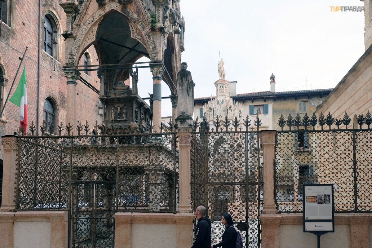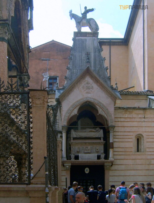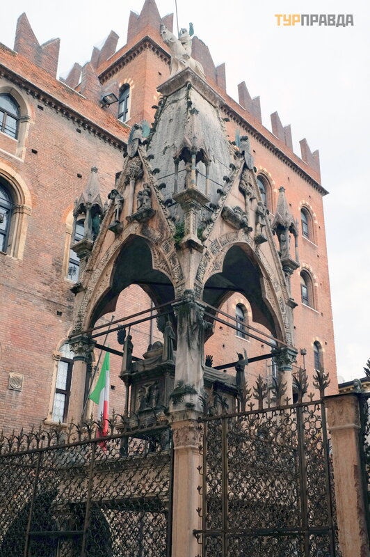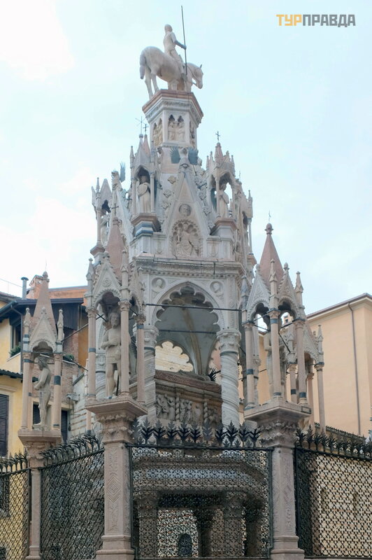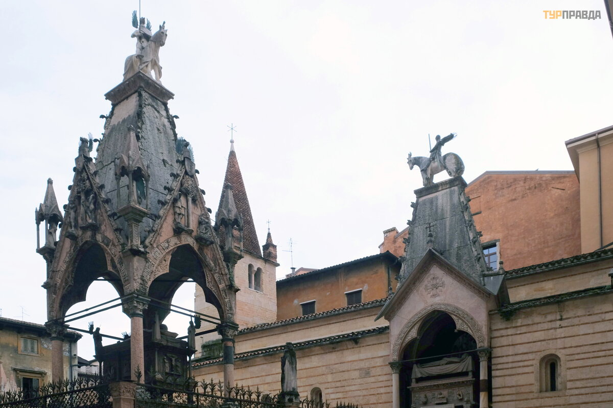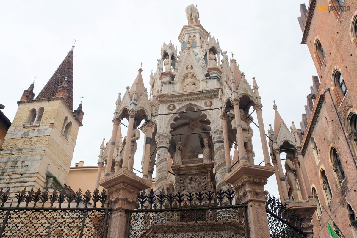 Skaligerio arkos, apsuptos elegantiš kos kaltinė s tinklinė s tvoros su Della Scala š eimos heraldiniais motyvais, yra š eimos kapas. Kompleksas, kuris atrodo kaip senovinė karinė stovykla, susideda iš kelių smailių edikulų ,