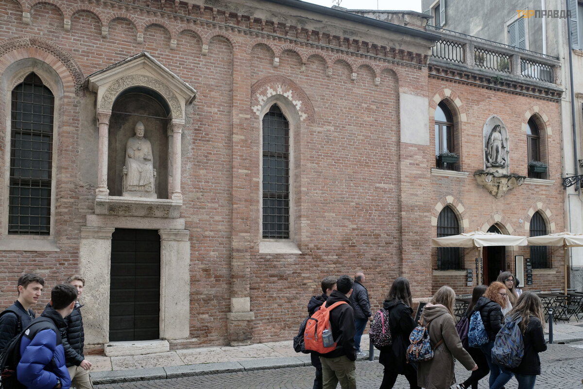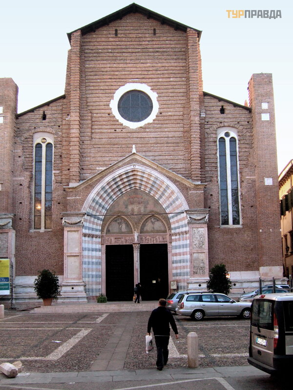 Gotikinis pastatas, kurį dominikonai pastatė toje vietoje, kur tikriausiai jau egzistavo baž nyč ia, su tokia pač ia dedikacija, nors nemaž ai tyrinė tojų mano, kad dominikonai norė jo paš vę sti naują š ventyklą Š v. Petrui Kankiniui, Veronos broliui. San Zeno (abu š ventieji yra miesto globė jai).