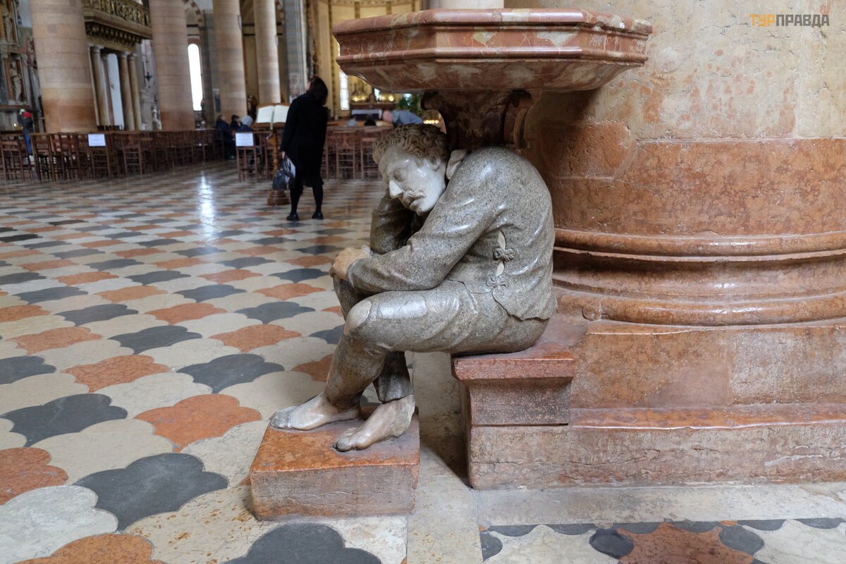 Didelį susidomė jimą kelia palaiminimo dubenys, vienas iš jų iš kaltas XVI a. pradž ioje, kitas 1591 m. Dubenys yra ant dviejų garsių groteskiš kų statulų , pravardž iuojamų „Kuprotais Š v. Anastasija“.