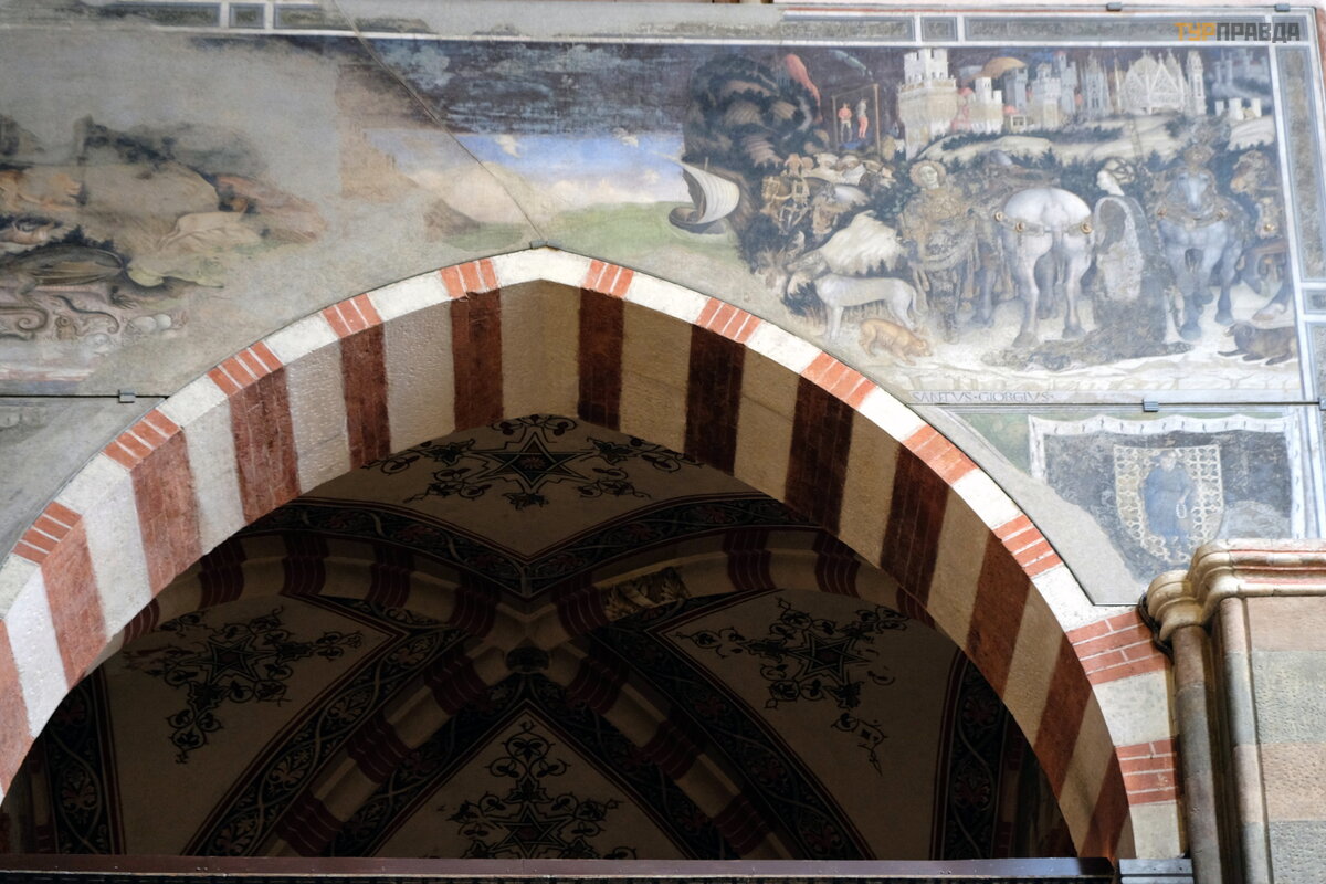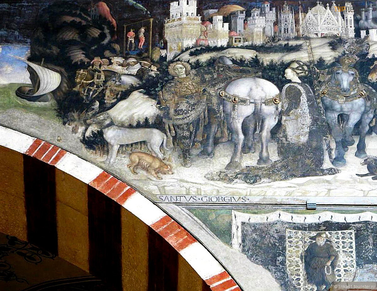 Iš orinė je koplyč ios arkoje yra pagrindinis š ventyklos š edevras – unikali freska „Š ventasis Jurgis, pristatantis princesę “, kurią nutapė dailininkas iš Veronos Antonio Pisano, geriau ž inomas kaip Pisanello.