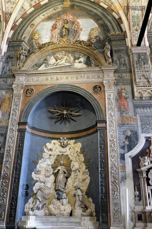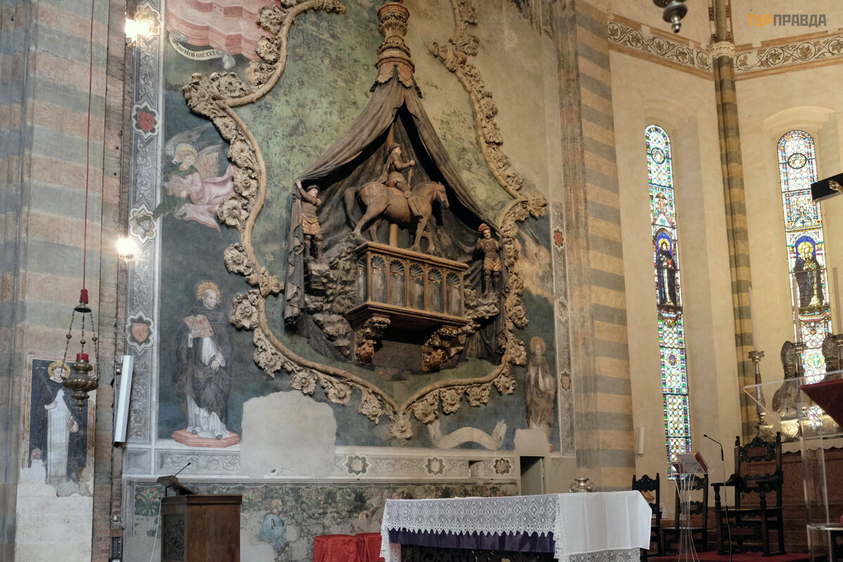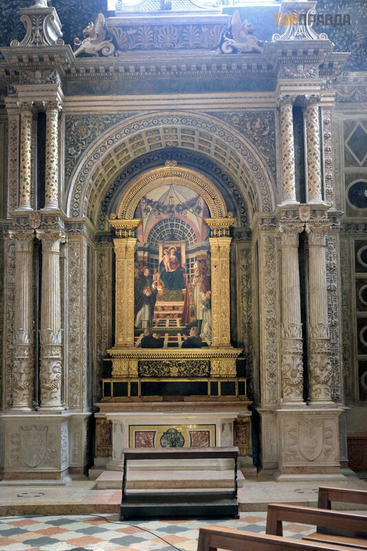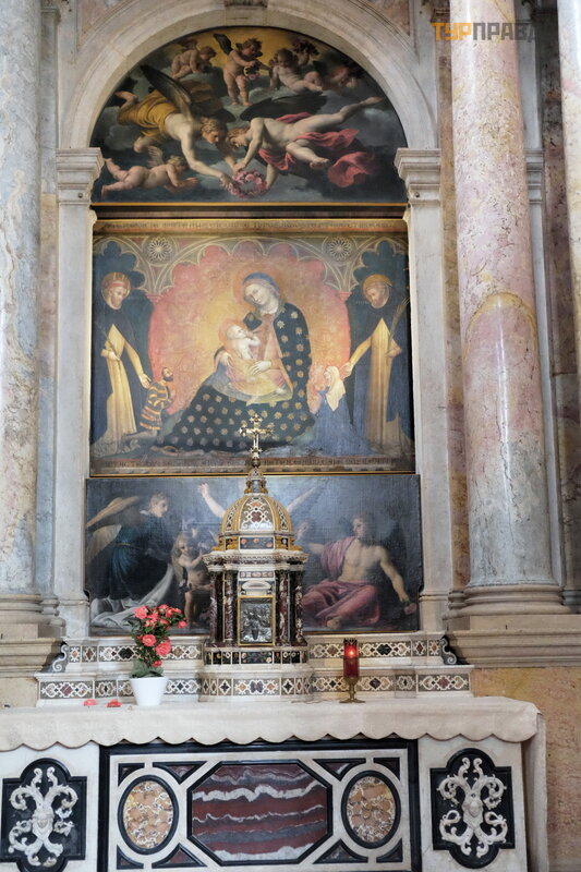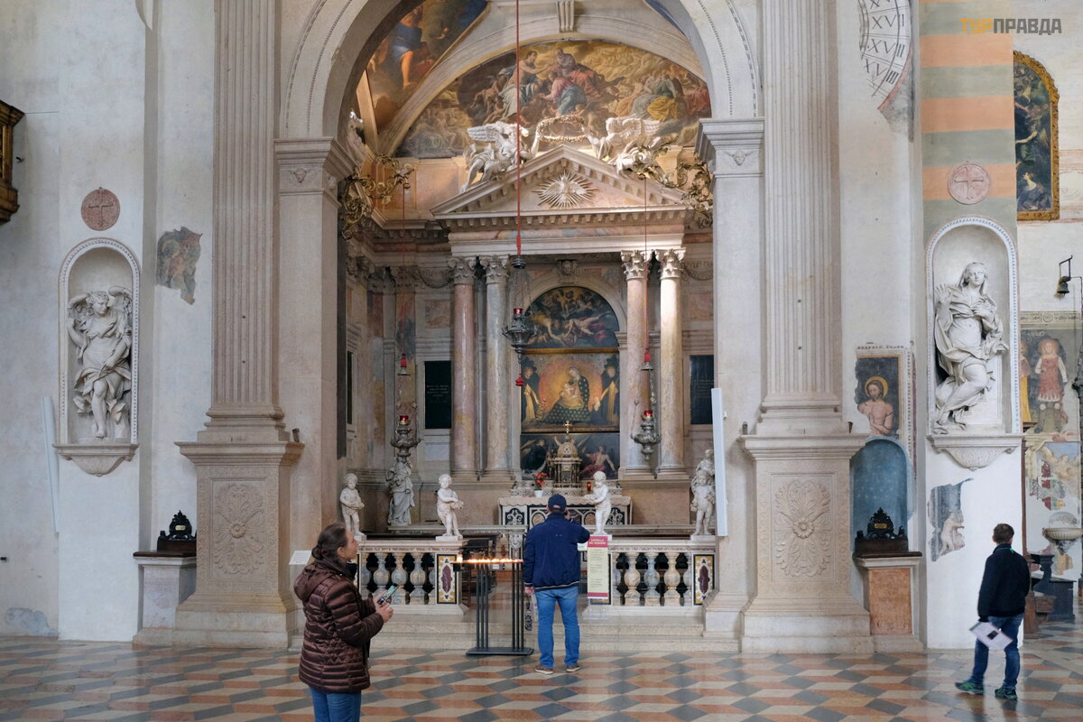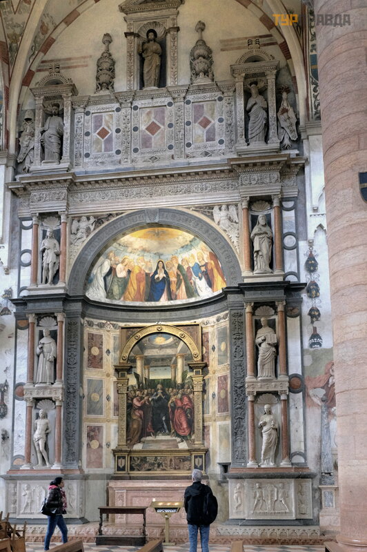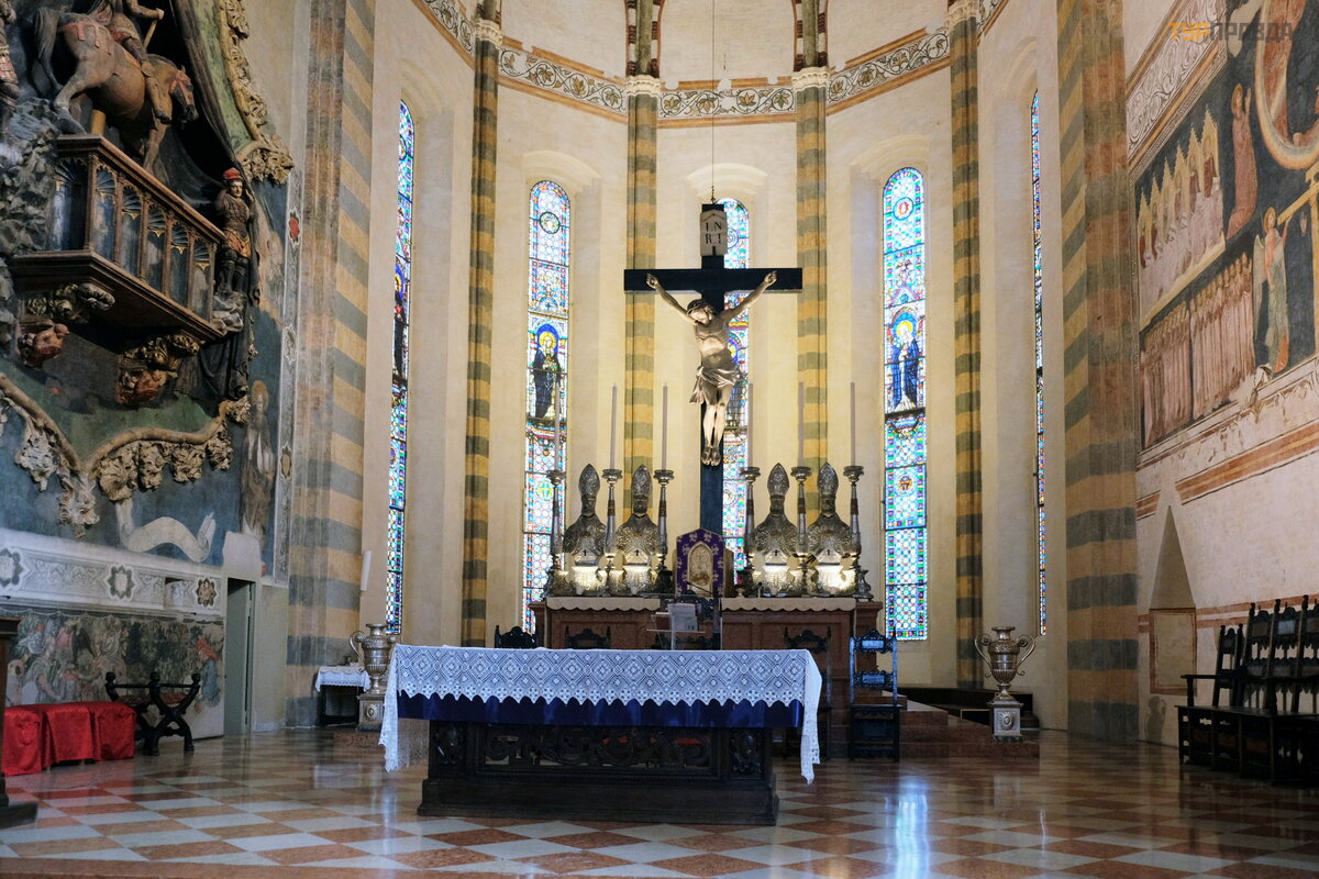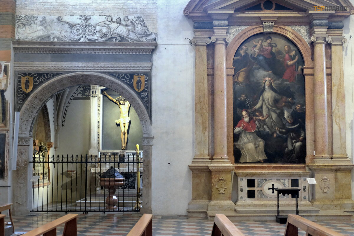Pagrindiniame altoriuje yra Cortesi Serego kapas, kurį.1492 m. sukū rė Nanni di Bartolo.