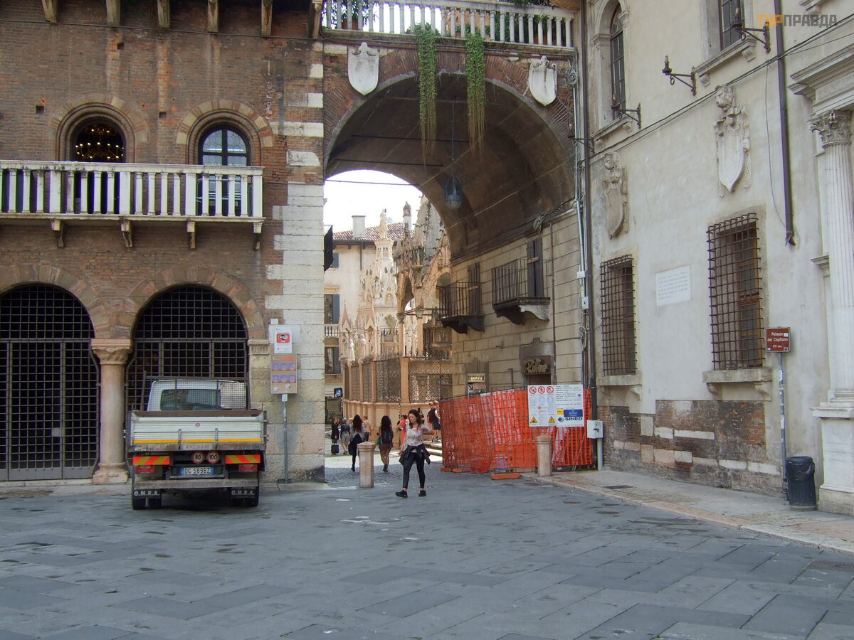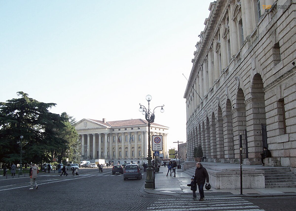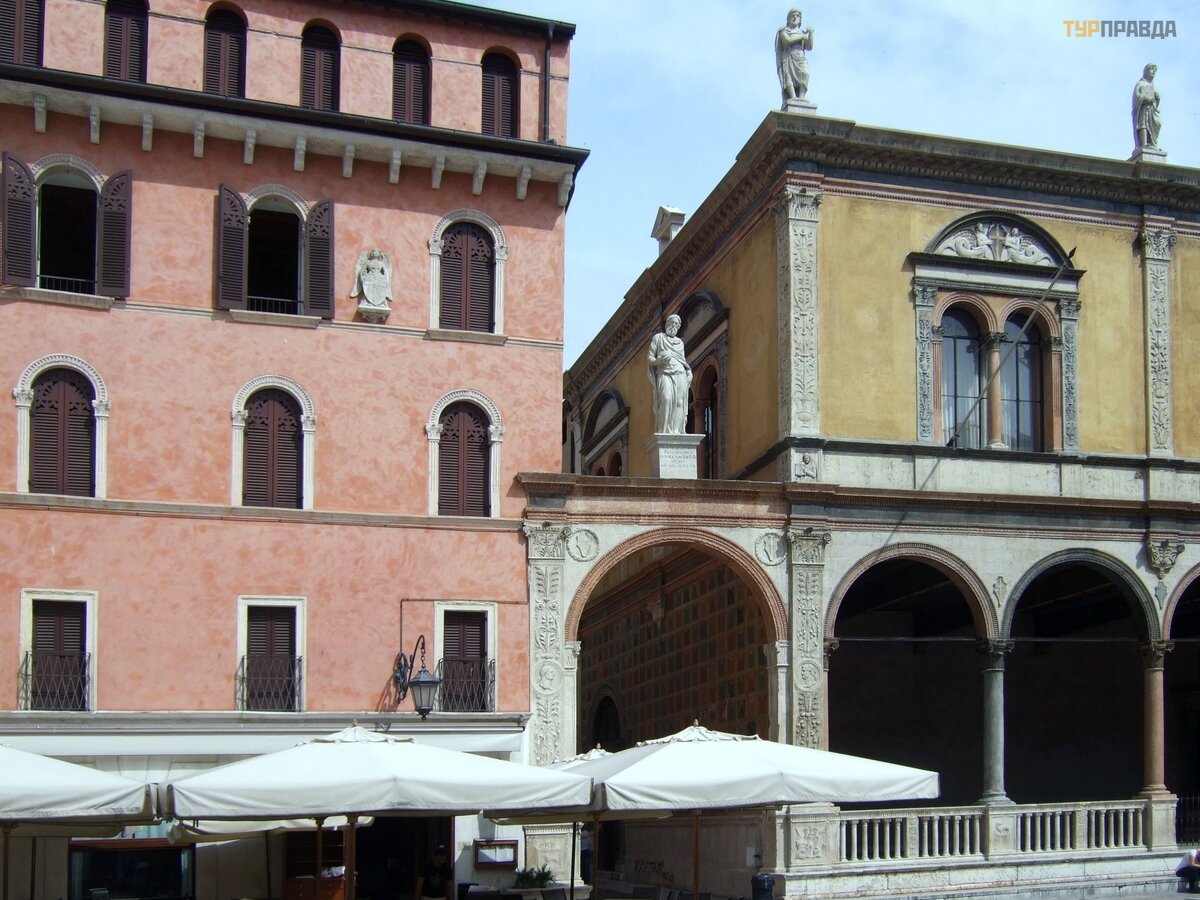 Š alia sovietų lodž ijos stovi rož inis pastatas, buvusi valiutos keitykla, ji arka sujungta su buvusiais Teisė jų rū mais, ant kurios stovi italų raš ytojo Markizo Scipionė s Mafė jo skulptū ra. kuris kovojo už savo gimtojo miesto Veronos socialinio gyvenimo ir kultū ros atnaujinimą .