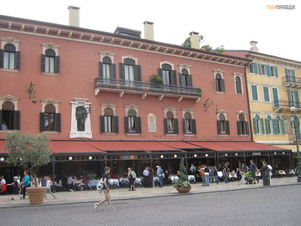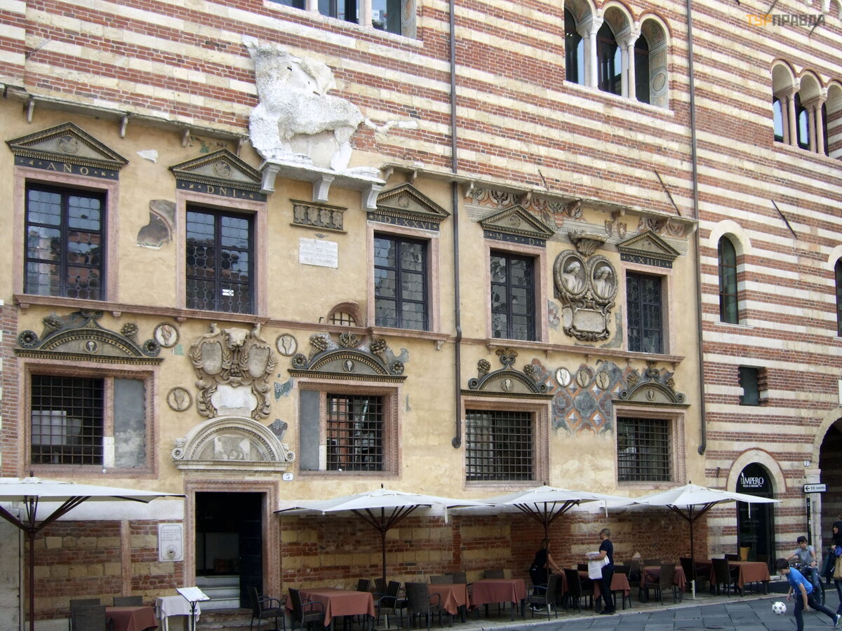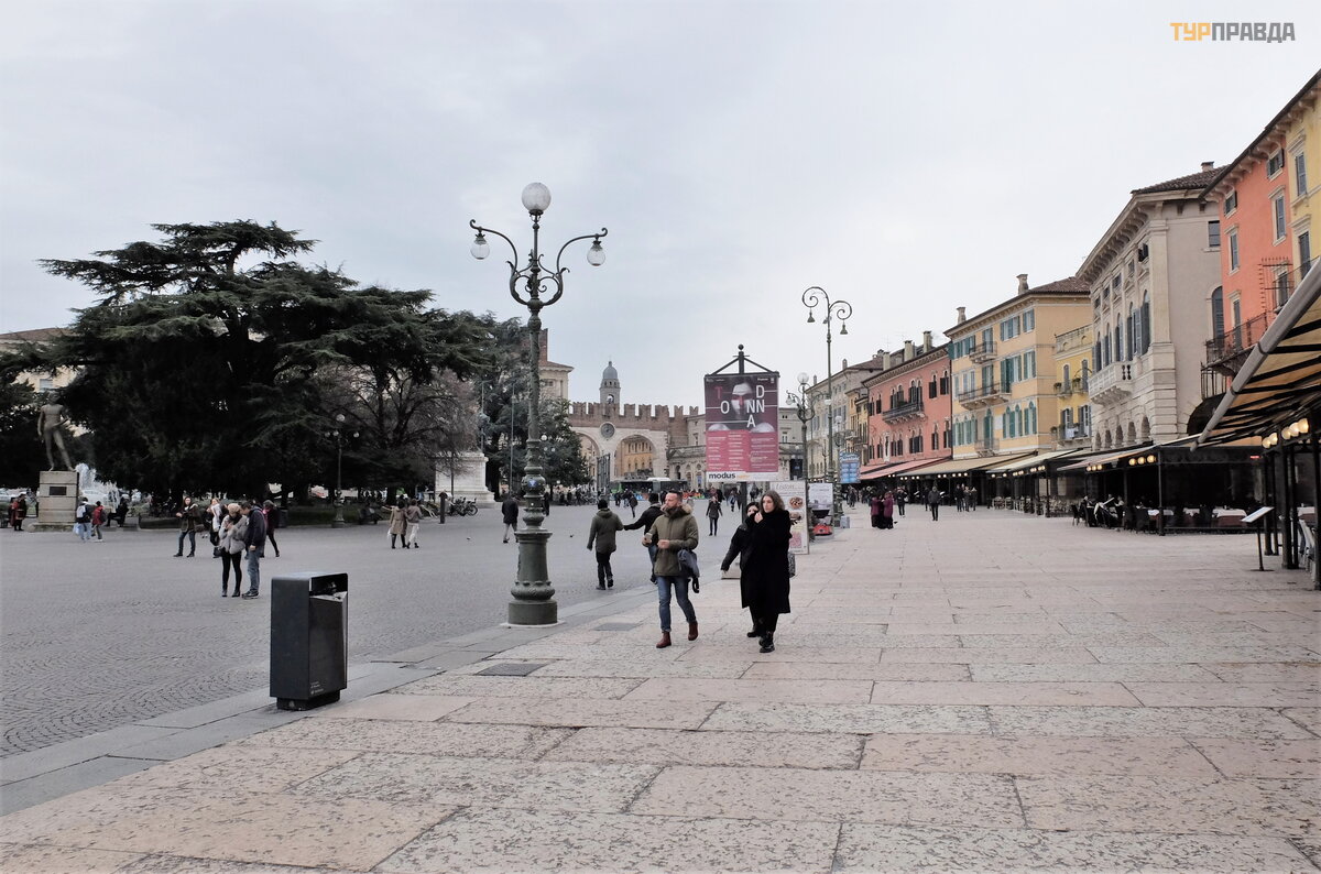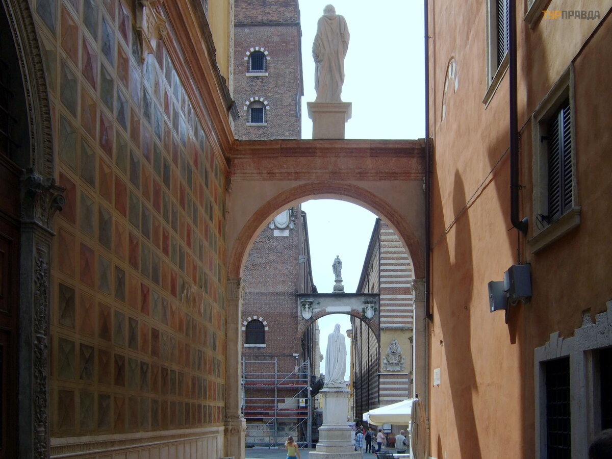 Š alia sovietų lodž ijos stovi rož inis pastatas, buvusi valiutos keitykla, ji arka sujungta su buvusiais Teisė jų rū mais, ant kurios stovi italų raš ytojo Markizo Scipionė s Mafė jo skulptū ra. kuris kovojo už savo gimtojo miesto Veronos socialinio gyvenimo ir kultū ros atnaujinimą .
