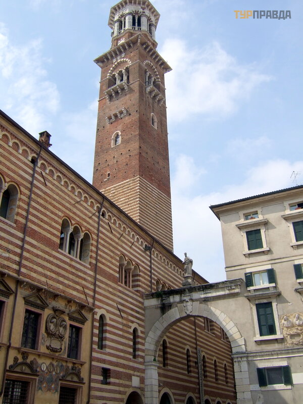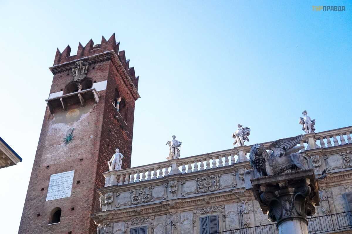 Aukš č iausias Veronos pastatas iš kyla virš rū mų – Laisvė s bokš tas / Torre dei Lamberti (Torre dei Lamberti), kuris, nepaisant visuomeninė s svarbos kaip miesto bokš tas, pavadinime iš laiko atminimą statytojo 1172 m. senovinė je Veronė s š eimoje. Dabar Lamberti bokš to virš uje yra apž valgos aikš telė .