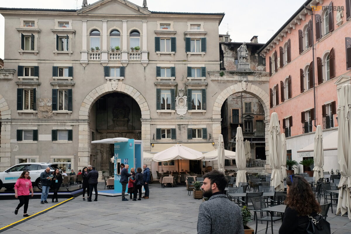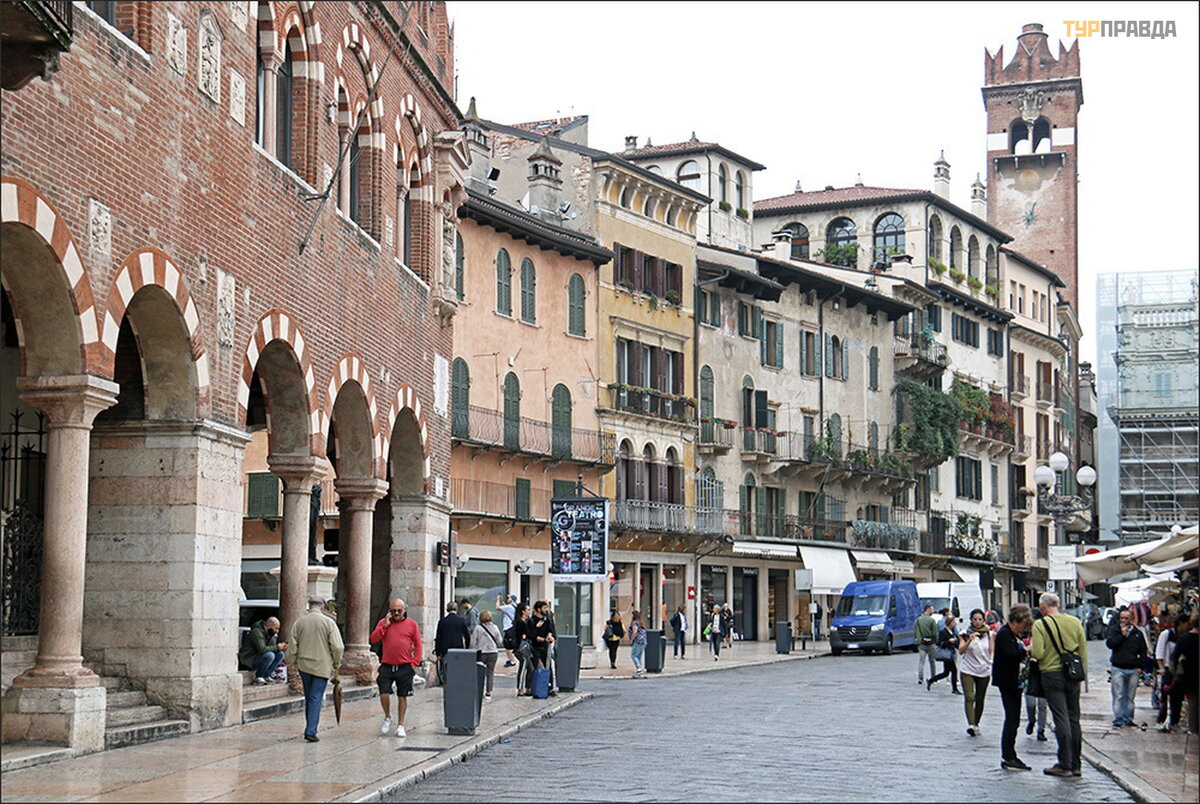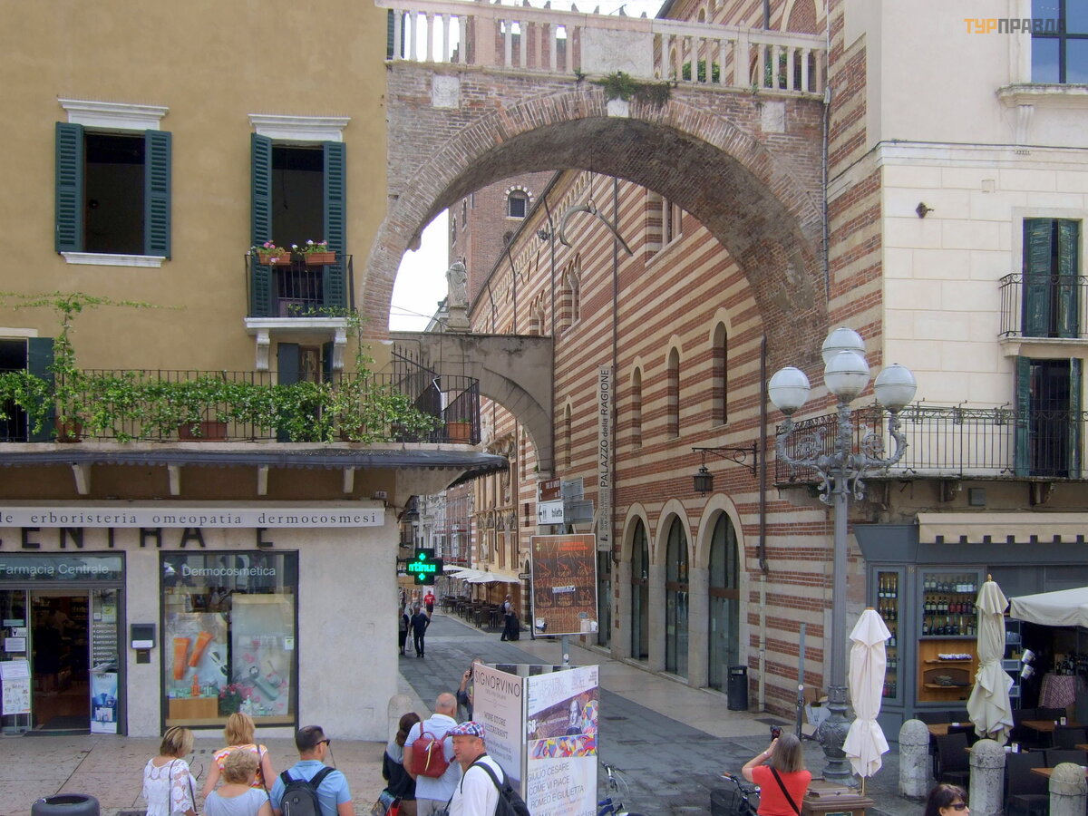 Eikime į patį Veronos centrą . Piazza delle Erbe (Piazza delle Erbe) – vaistaž olių aikš tė , esanti ten, kur senovė je buvo Romos forumas. Š iuo metu č ia veikia vaisių ir darž ovių turgus.