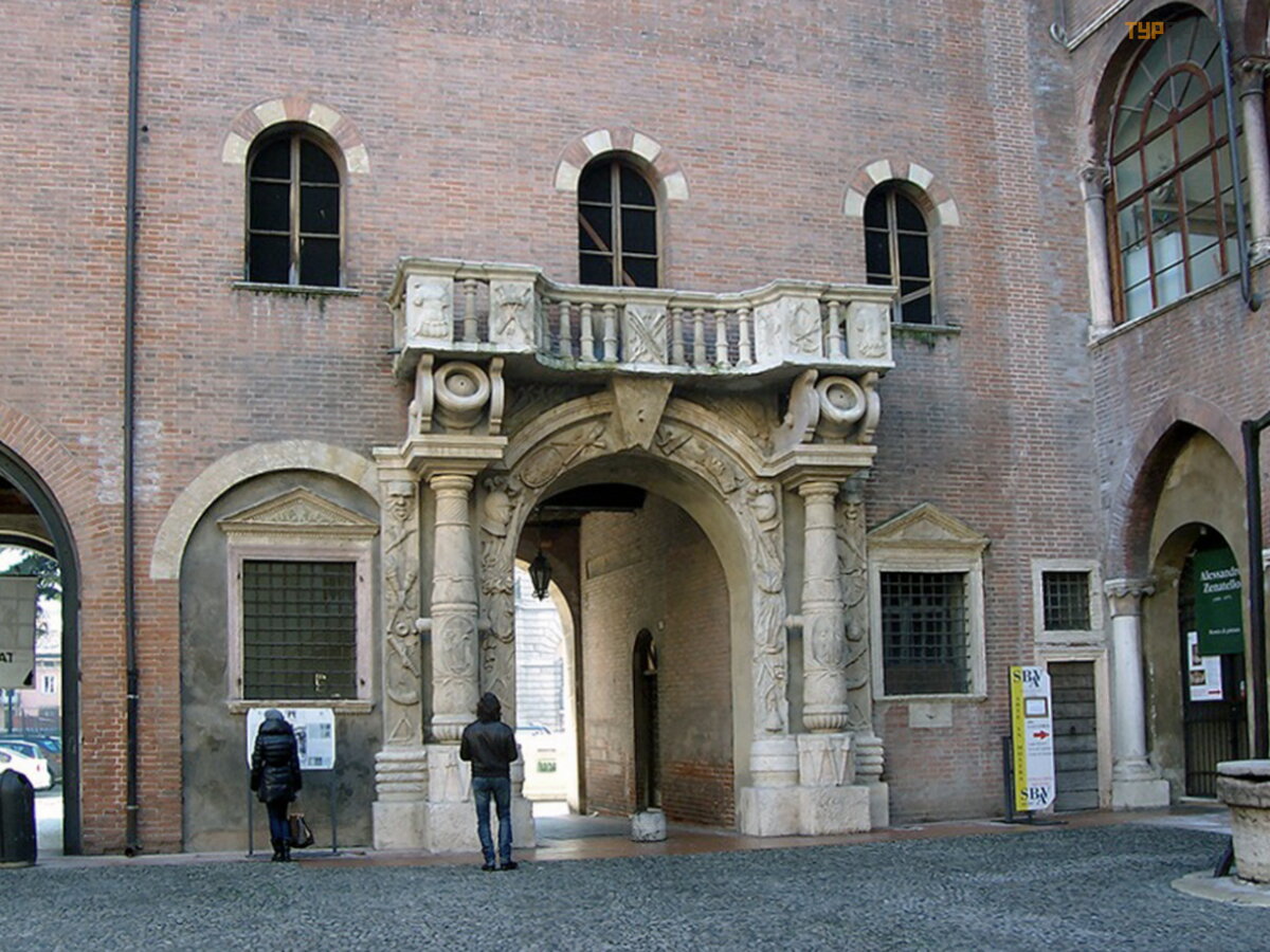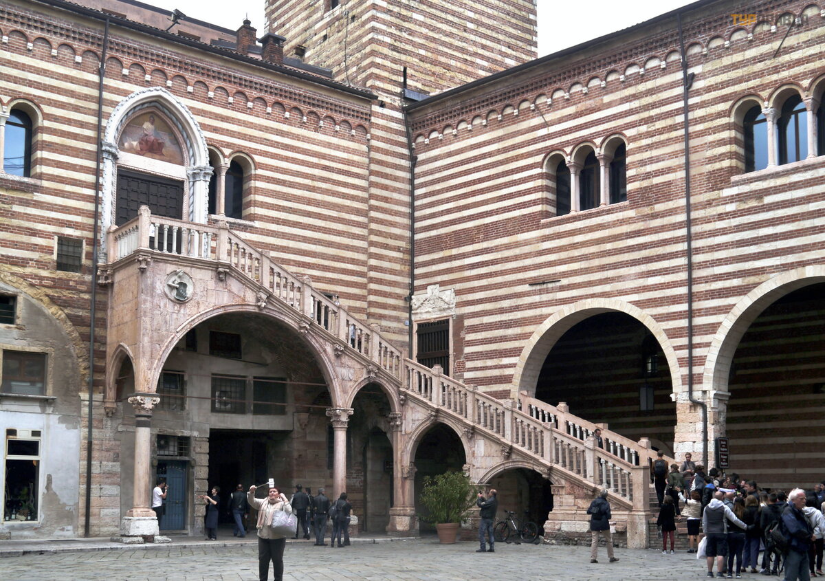 Iš aikš tė s galite patekti į elegantiš ką Palazzo Comunale kiemą , ž inomą kaip Senojo turgaus kiemas, kuriame yra gotikiniai Proto laiptai/ Scala della Ragione vis dar saugoma (Scalla della Regione), kuri veda į muziejų , Modernaus meno galeriją .