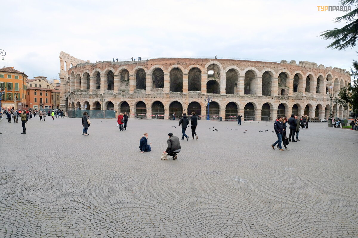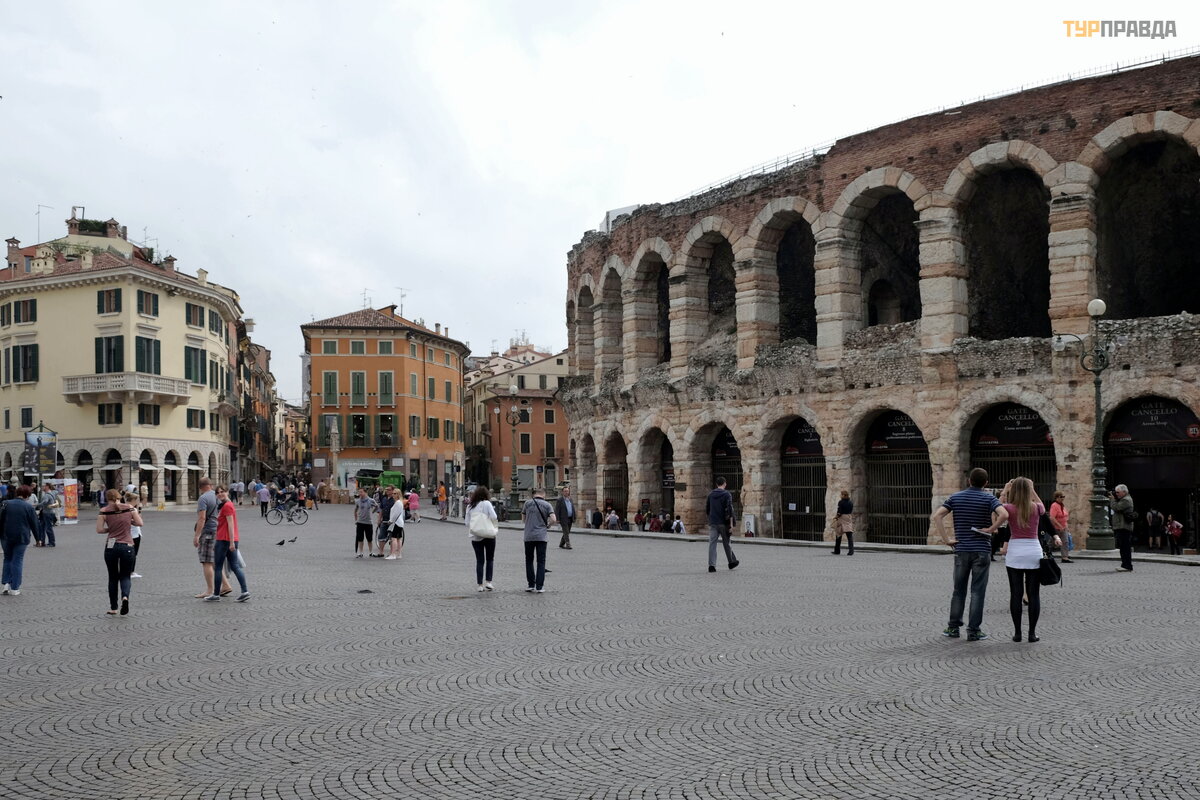 Centrinę vietą už ima didinga Amfiteatro arena (Arena) – pagrindinis, geriausiai iš likę s I mū sų eros amž iaus senovė s romė nų paminklas. e. Treč ia pagal dydį pasaulyje, po Romos Koliziejaus ir Santa Maria Capua Vetere amfiteatro, Veronos arena ypač į domi dė l puikios iš saugojimo. Š iandien kasmet vykstantys operos spektakliai Veronos arenoje tapo pasaulinė s reikš mė s kultū ros į vykiu, o vietiniai muzikiniai sezonai kasmet pritraukia daugiau nei pusę milijono ž iū rovų .