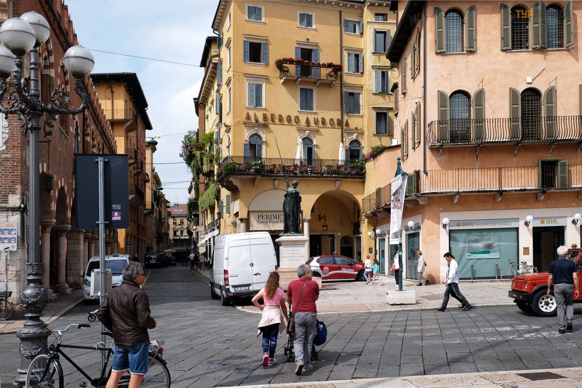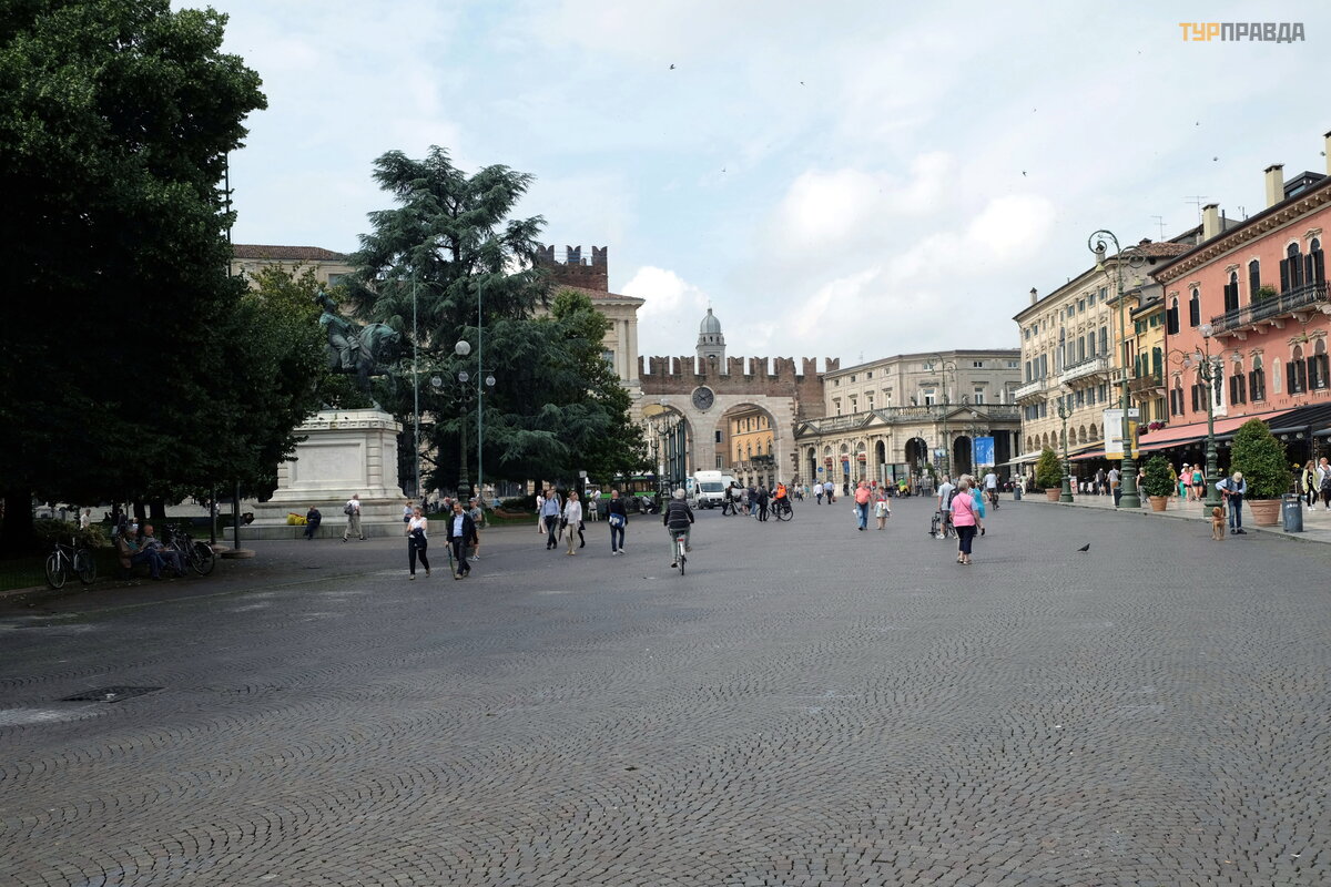 Iš eiti iš miesto centro. Einame link Arena de Verona. Nedidelė XIV amž iaus lapkrič io aikš tė , kurioje stovi paminklas 1915 m. š irdims, kai austrų lė ktuvas bombardavo istorinį miesto centrą ir smogė daugybei civilių turguje.