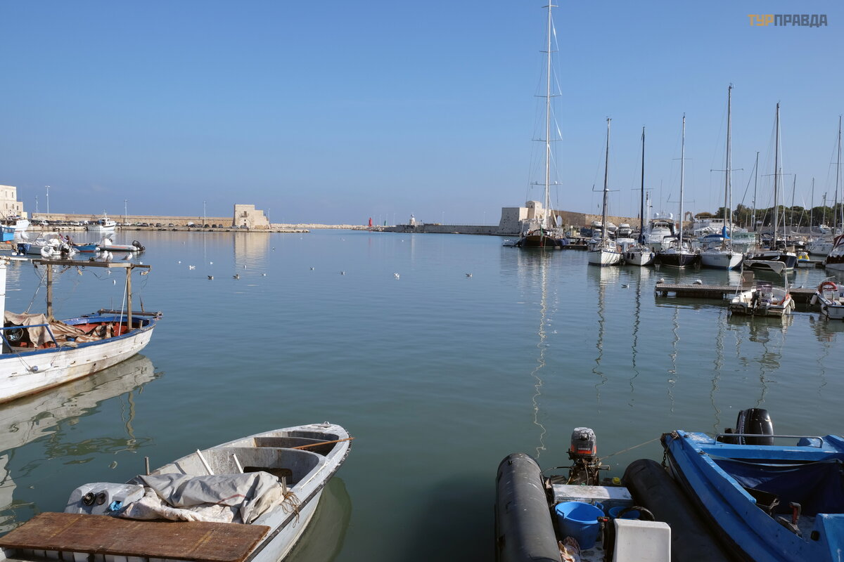 Jū rų uosto vaizdas taip pat yra puikus, kaip ir daugelyje Apulijos miestų .