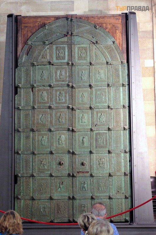 sukurta 1179 m. Juos sudaro 32 skydai, kurių kiekvienoje yra bareljefai religinė mis ir mitologinė mis temomis. Tiesą sakant, š iandieninė s durys yra kopija, o jų originalą galima pamatyti katedros viduje.