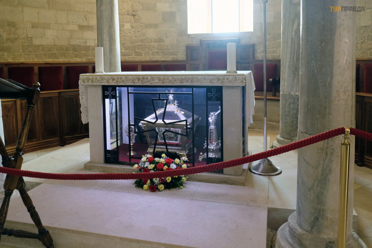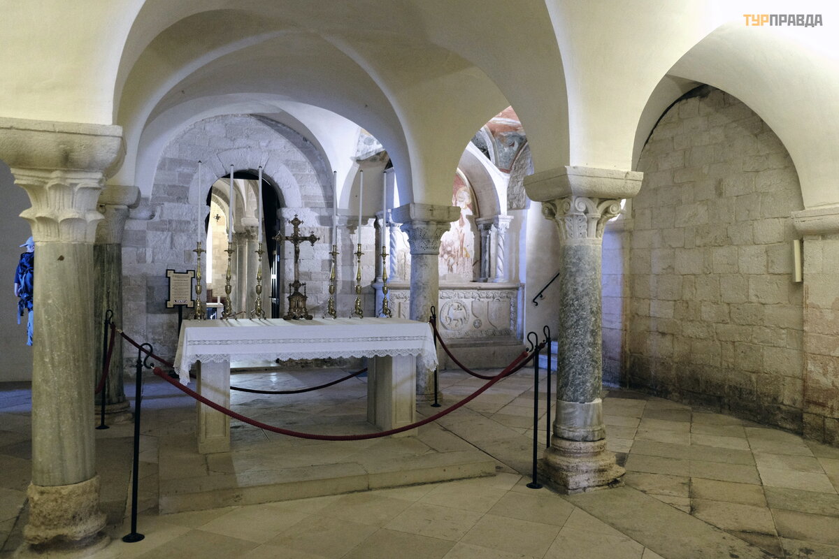Miesto globė jo š ventojo Nikolajo Peligrino (piligrimo), paskelbto š ventuoju po jo mirties 1094 m. , relikvijų kriptoje.