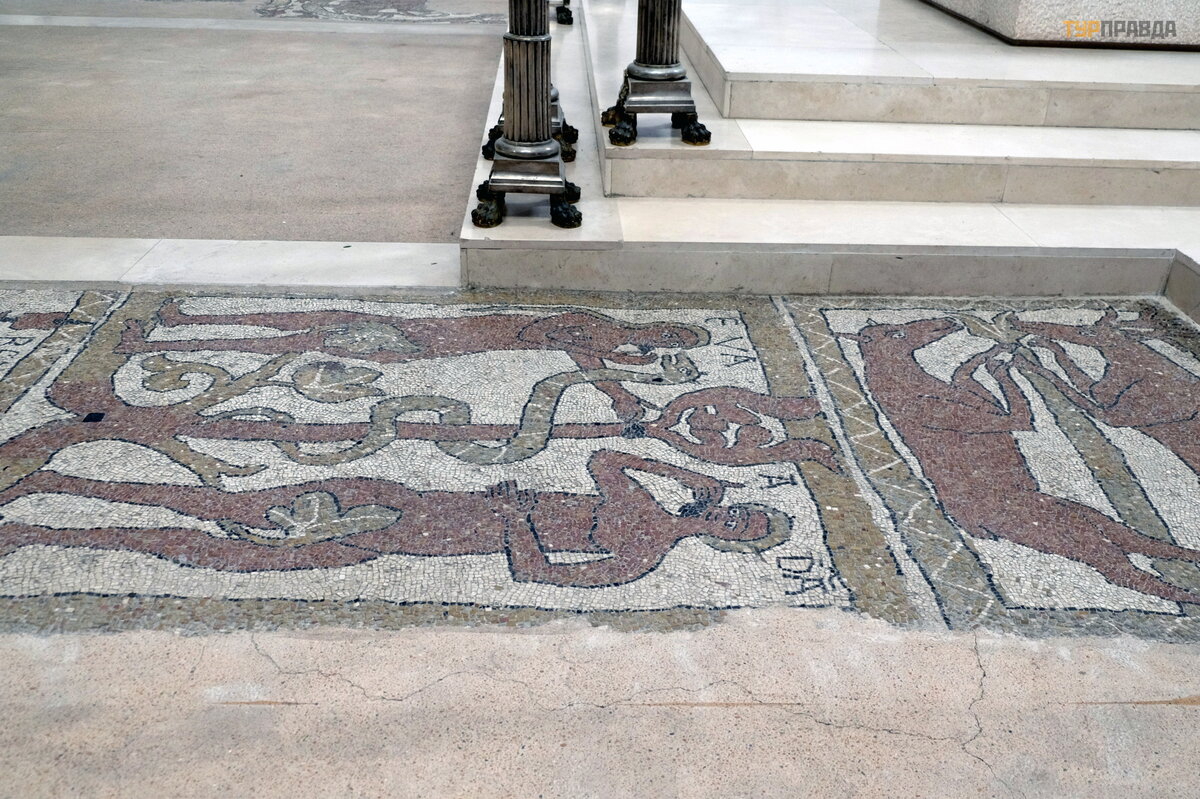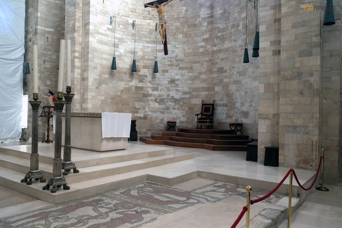 Iš aikš tė s iš karto yra į ė jimas į katedros kriptą , į pač ią katedrą veda laiptai tiek iš aikš tė s, tiek iš kriptos. Pati normanų š ventykla buvo pastatyta Bizantijos vietoje, kurios elementai iš likę kriptoje.