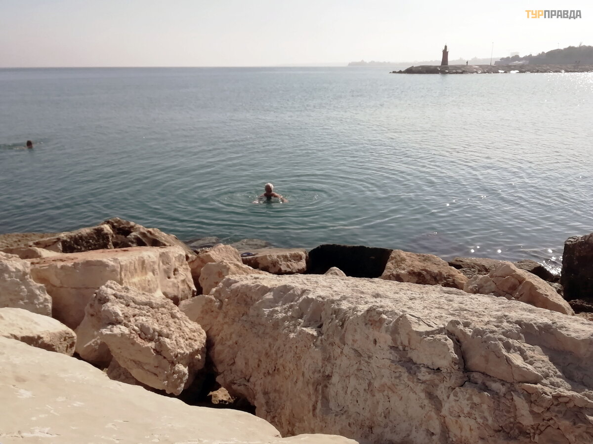 . . . ant kurio ilsisi daug vietinių miestieč ių , iš pradž ių galvojau, kaip ant tokių akmenų nusileisti prie jū ros, bet vietiniai man pamojavo „Nagi, padė kim“. Jie mums parodė nusileidimo vietą ir su dideliu malonumu ilgai plaukė me š iltame vandenyje.