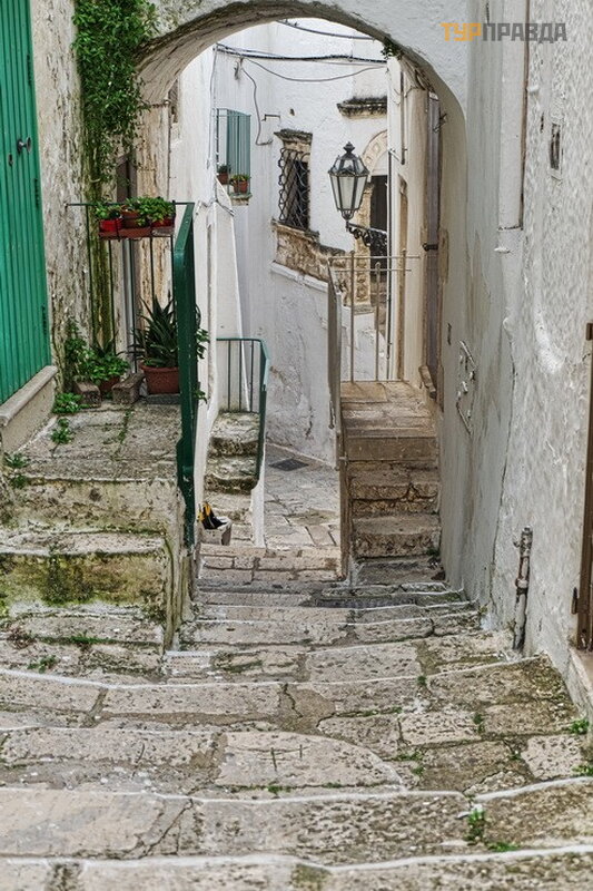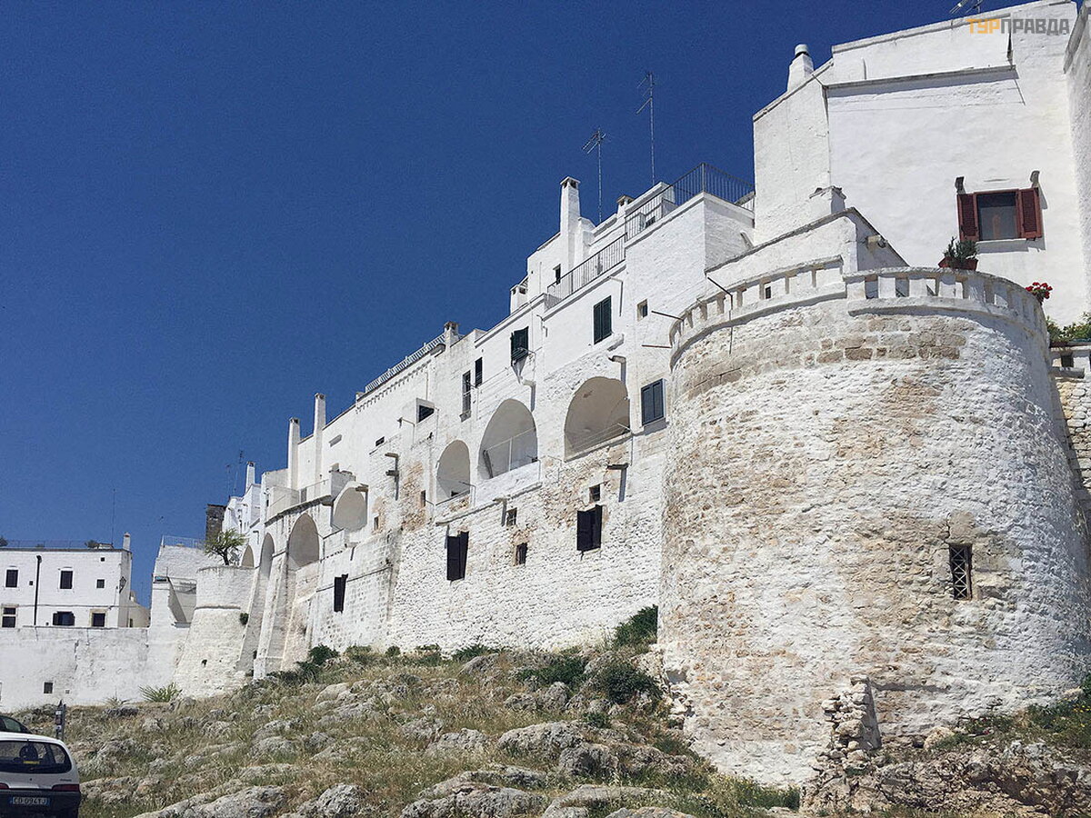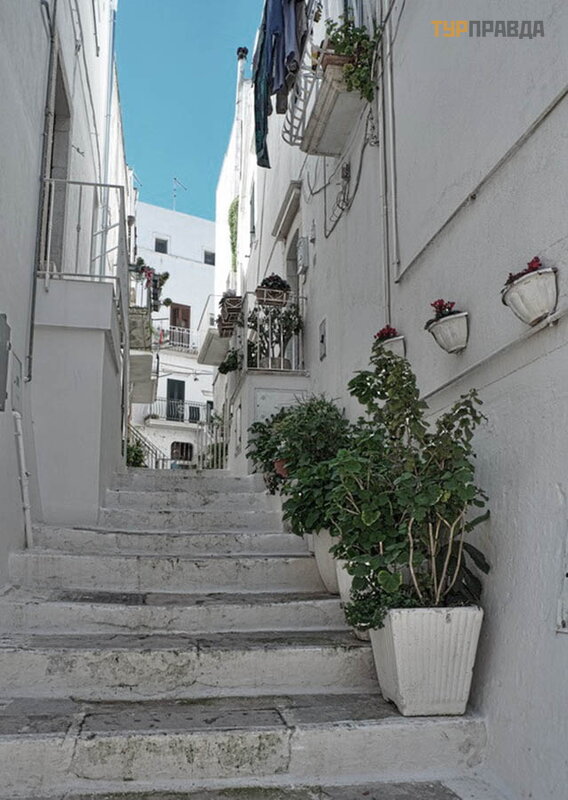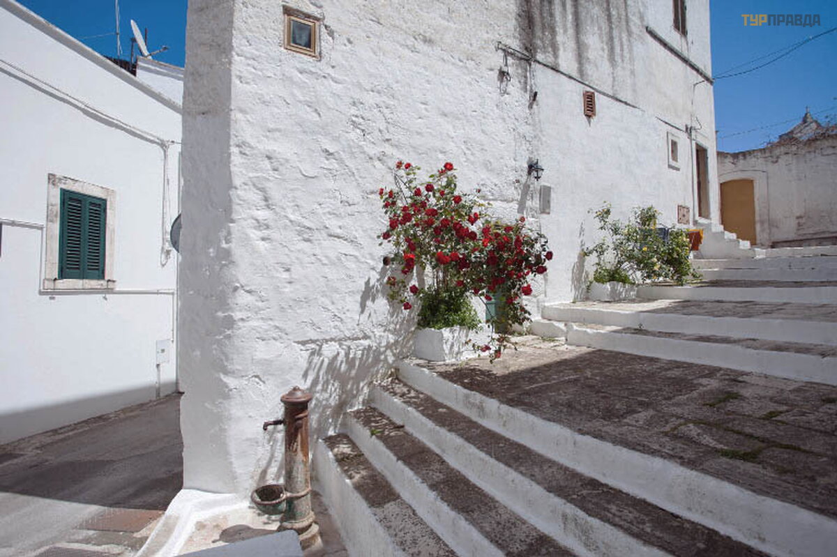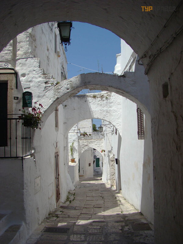 Ostuni dė l baltos pastatų spalvos vadinamas „baltuoju miestu“, „balta Italijos ponia“. Tai aiš kiai matoma iš toli.