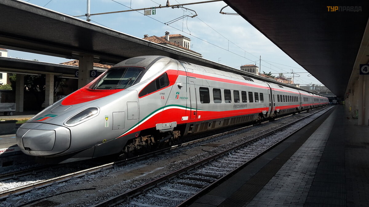 Italijoje veikia greitų jų gelež inkelių tinklas, taip pat yra traukiniai „Frecciarossa“ ir „Frecciabianca“ („Raudonoji rodyklė “ ir „Baltoji rodyklė “), greitieji traukiniai pradė ti naudoti dar prieš karas. 1939 m. ETR 200 elektrinis traukinys nustatė pasaulio marš ruto tarp Milano ir Bolonijos greič io rekordą , tada jis buvo 165 km/h, maksimalus 203 km/val. Palyginimui: mū sų Sapsan greitis siekia 167 km/val.