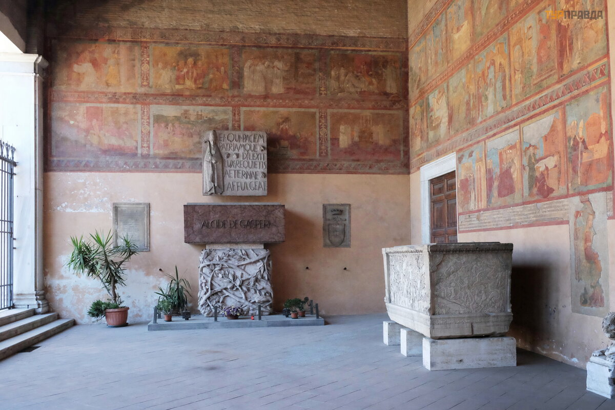 kuriame palaidota daug į ž ymybių (Vittorio da Sica, Marcello Mastroianni, Rodari, Rossellini, Gasman, Moravia).